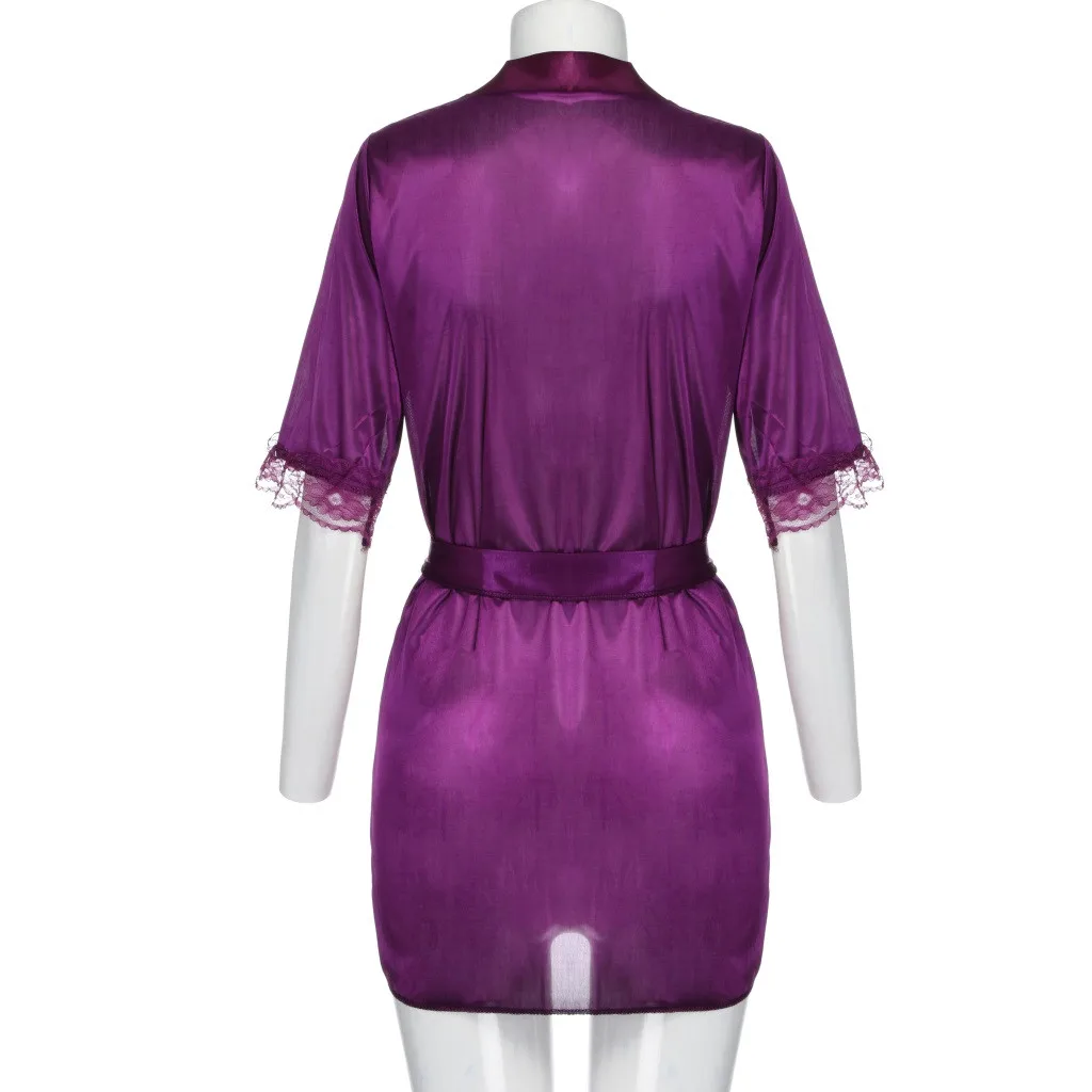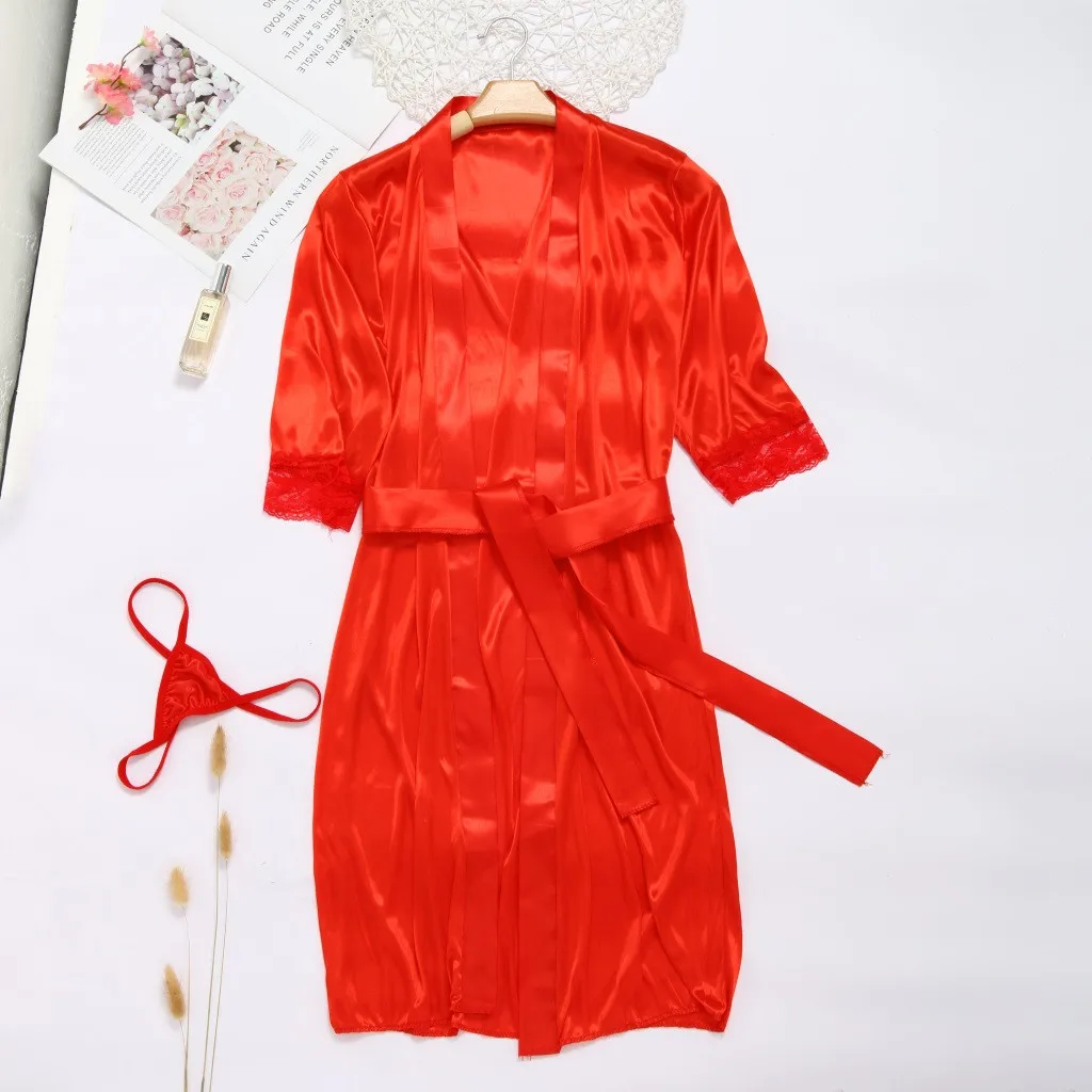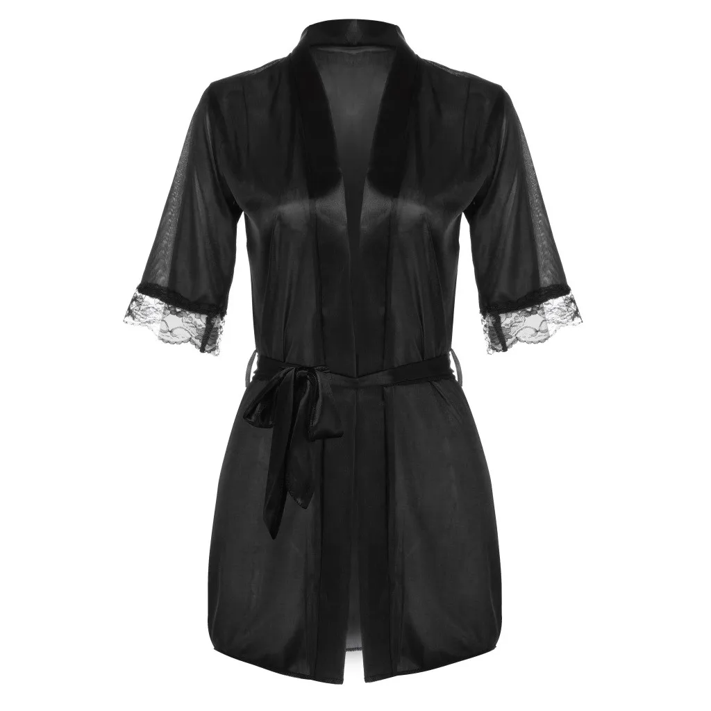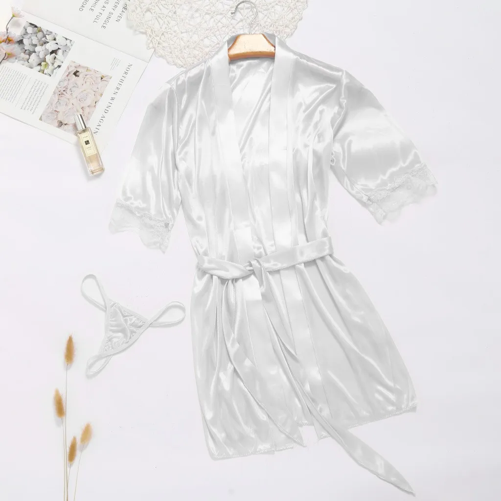 Женский Сексуальный банный халат, кружевное шелковое нижнее белье, ...