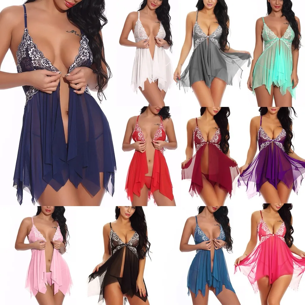 Сексуальное женское нижнее белье с застежкой спереди, комбинация с кружевом и V-образным вырезом, сетчатая Пижама, нижнее белье, женская одежда для сна, откровенное нижнее белье, новинка 2021