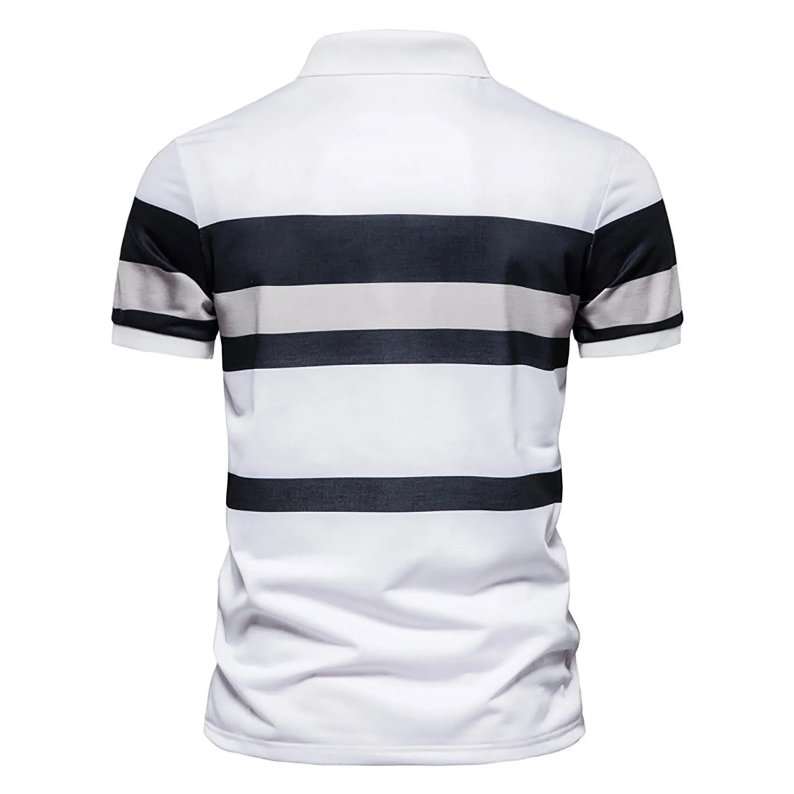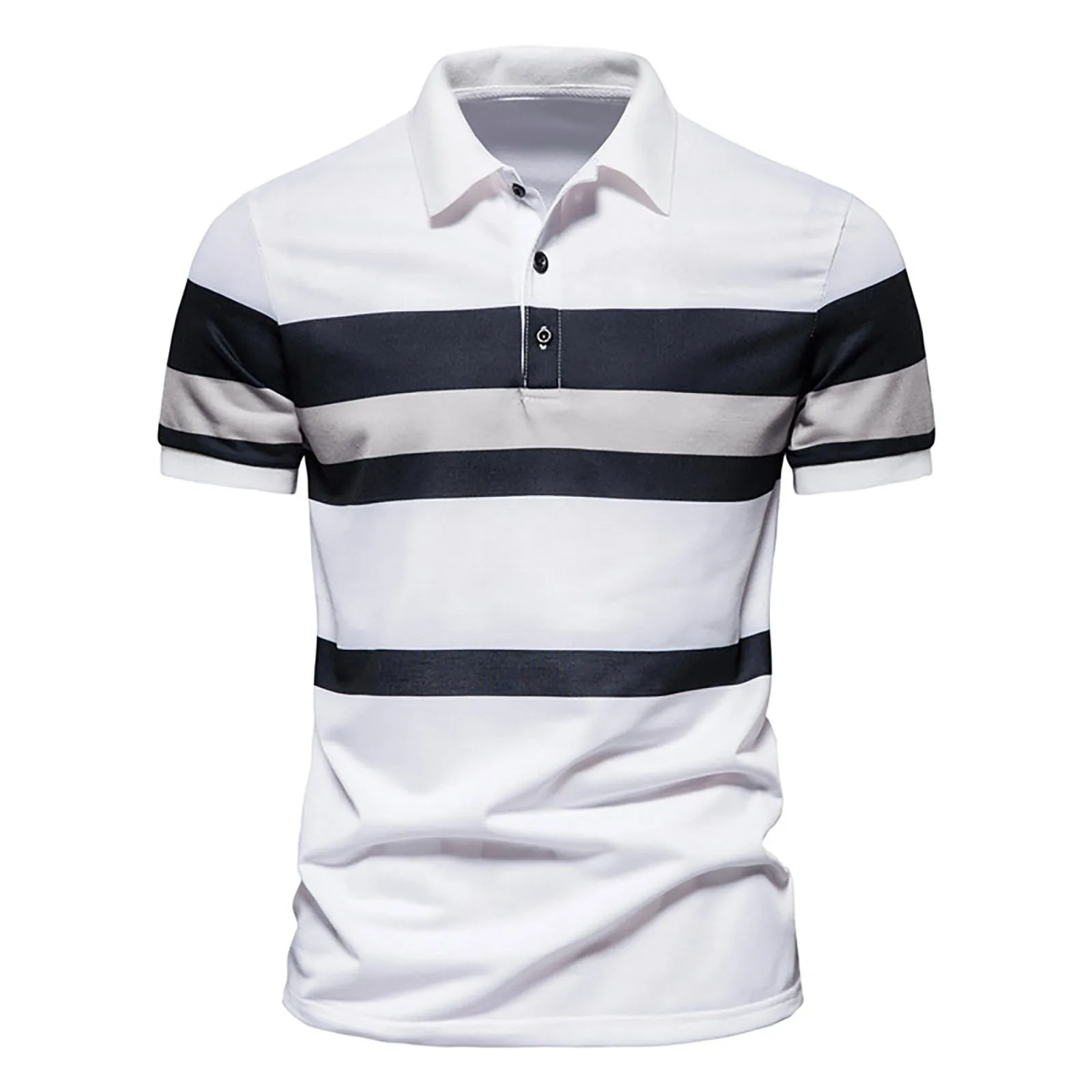 Мужская рубашка-поло контрастного повседневные футболки с короткими рукавами с отложным воротником, в полоску, с кнопками, блузка рубашка-Поло Топы деловая мужская одежда