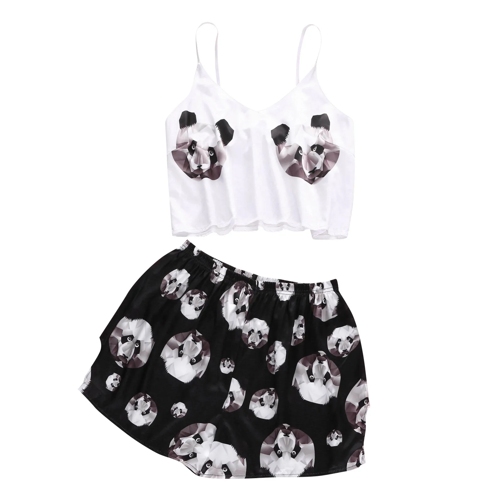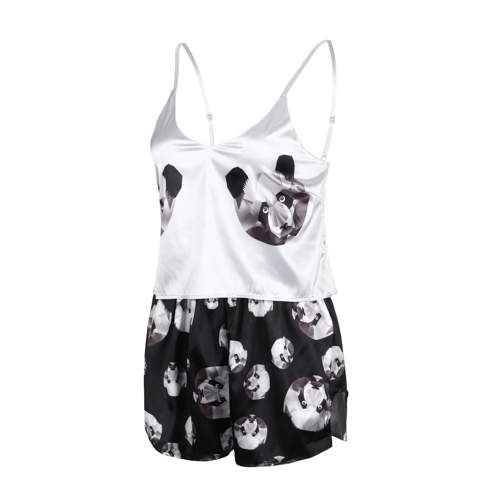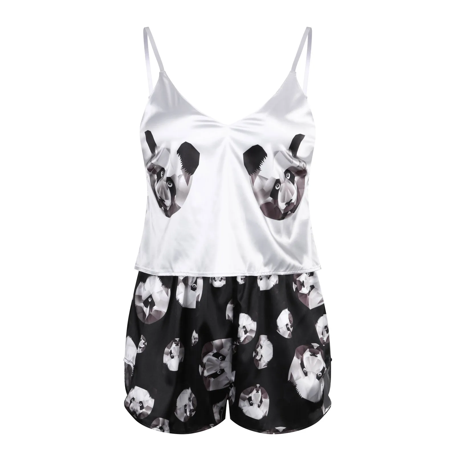 Пижама с животным мультяшным принтом Милая Пижама домашний костюм летняя Пижама с V-образным вырезом Пижама для женщин на тонких бретельках свободная Пижама атласная Женская пижама с кошкой