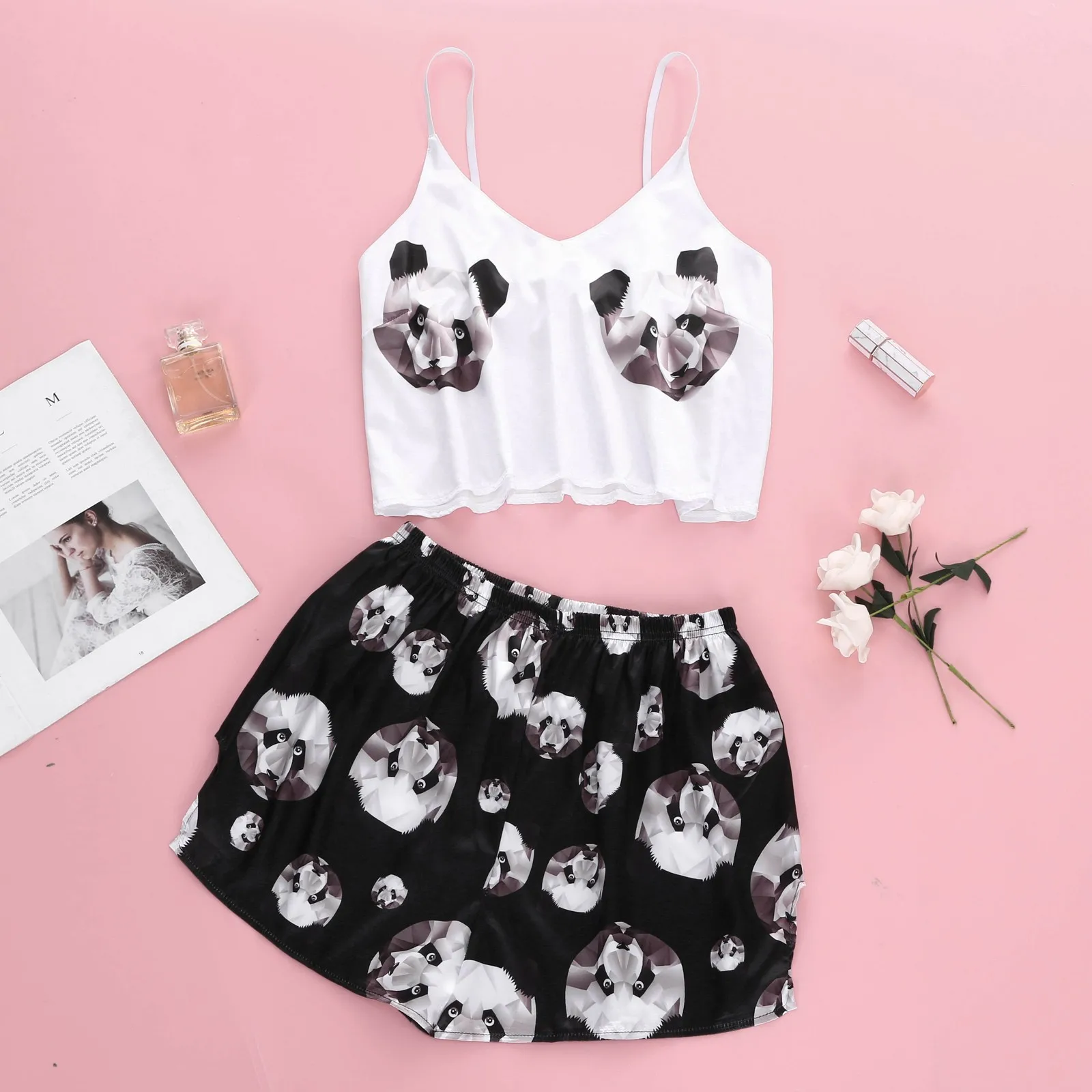 Новое сексуальное нижнее белье с принтом, шелковое нижнее белье, пижамы, атласное нижнее белье