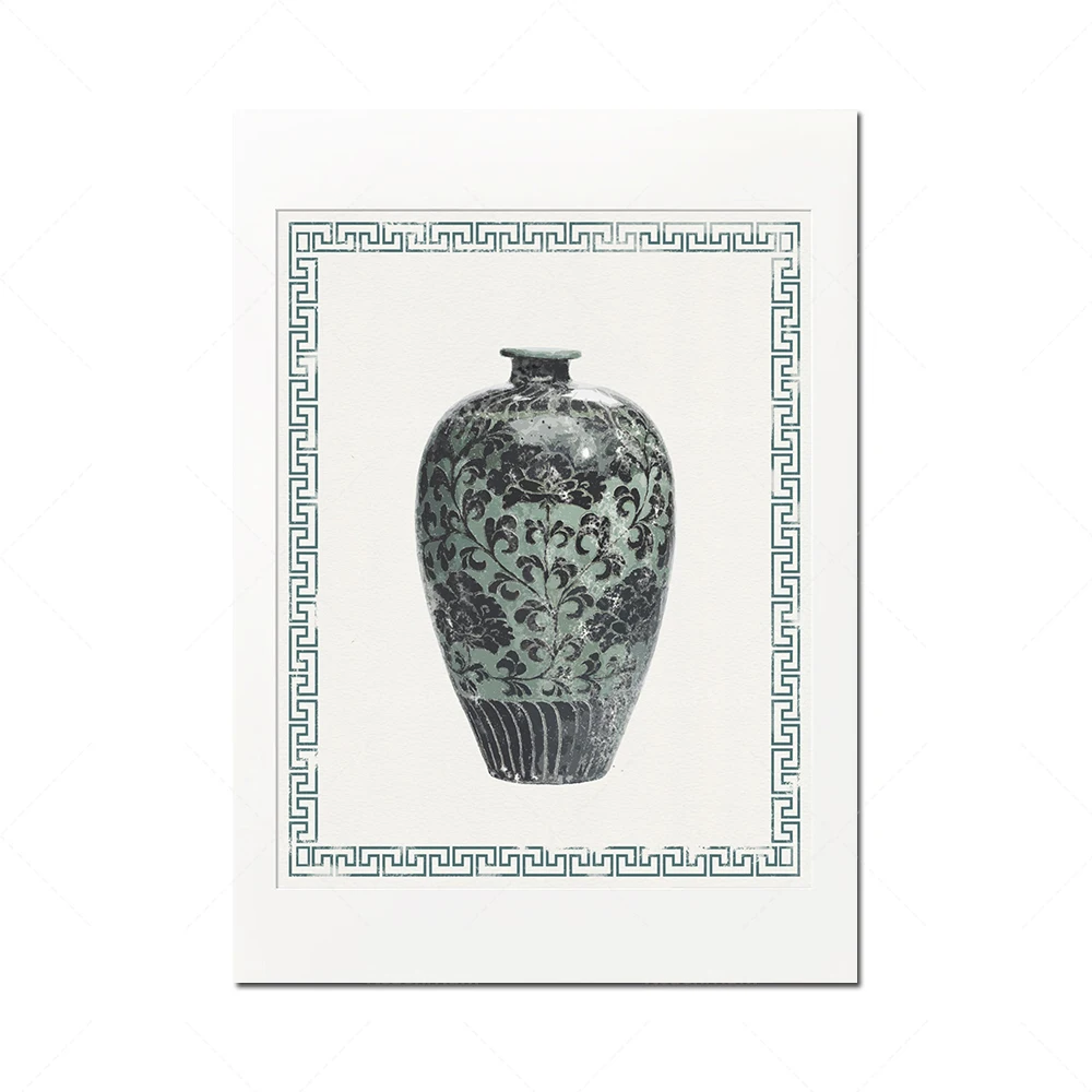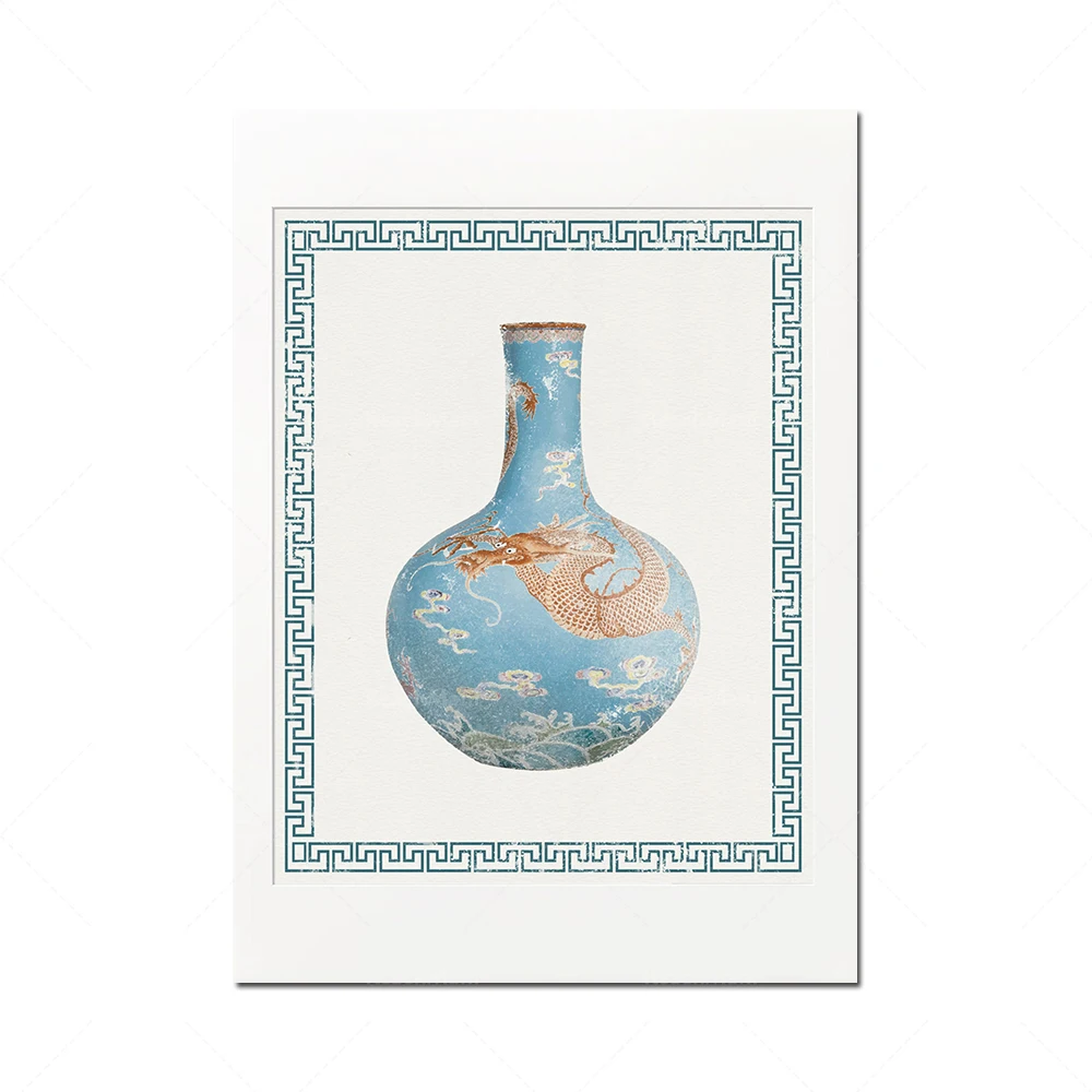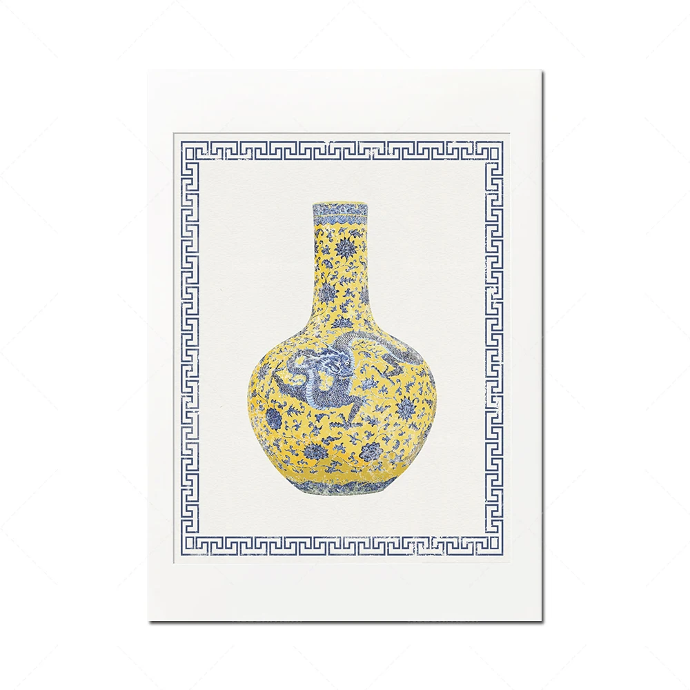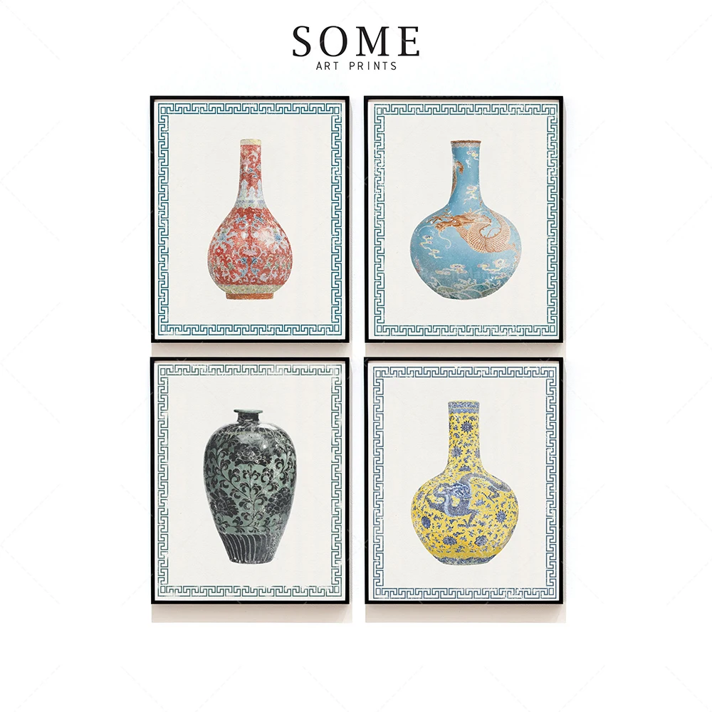 Принты имбирного горшка. Набор из 4 фарфоровых ВАЗ с принтом в китайском стиле. Красный, синий, зеленый, Восточный желтый керамический художественный плакат