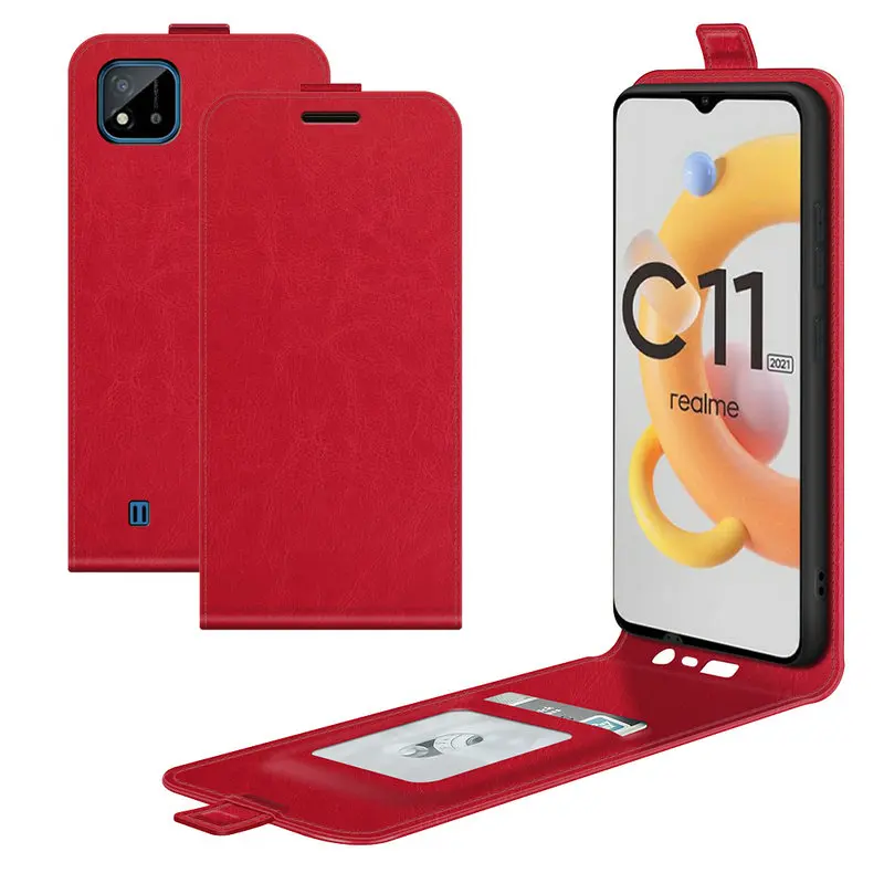 Оригинальный кожаный чехол-книжкаМатериал> ПУ + силиконЦвет> черный, красный, коричневый, белыйПодходит для>Для Realme C11 2021/RMX3231/6,52"