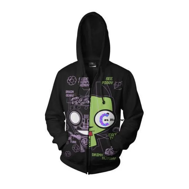 Новинка 2021, модная толстовка с капюшоном в стиле аниме Invader Alien Zim, толстовка с капюшоном для косплея и фильма, мужские толстовки 3D