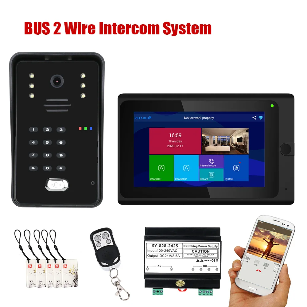 7 дюймов Беспроводной Wifi12 Мониторы автобуса 2 провода видео-телефон двери RFID видео домофон с Системы s Поддержка пульт дистанционного управления приложение умный дом Система контроля доступа Системы
