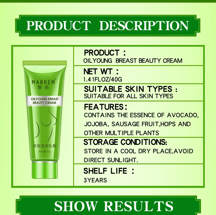 Содержит эссенцию авокадо, жожоба, колбасных фруктов, хмеля и других множества растений, чтобы добавить питательные вещества для кожи груди, слои питания, придать груди эластичность и смазку. Помогает улучшить изгиб и эластичность кожи груди, улучшает грубую и сухую кожу груди,Полная и нежная кожа, грудь и грудь, сделают вас более уверенными и привлекательными.