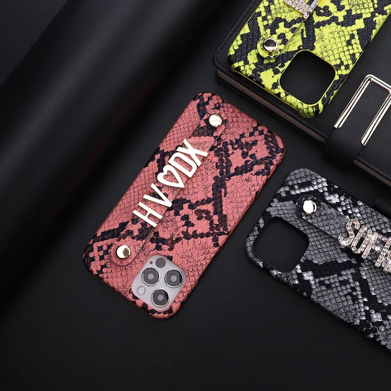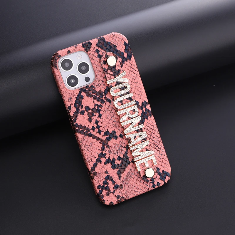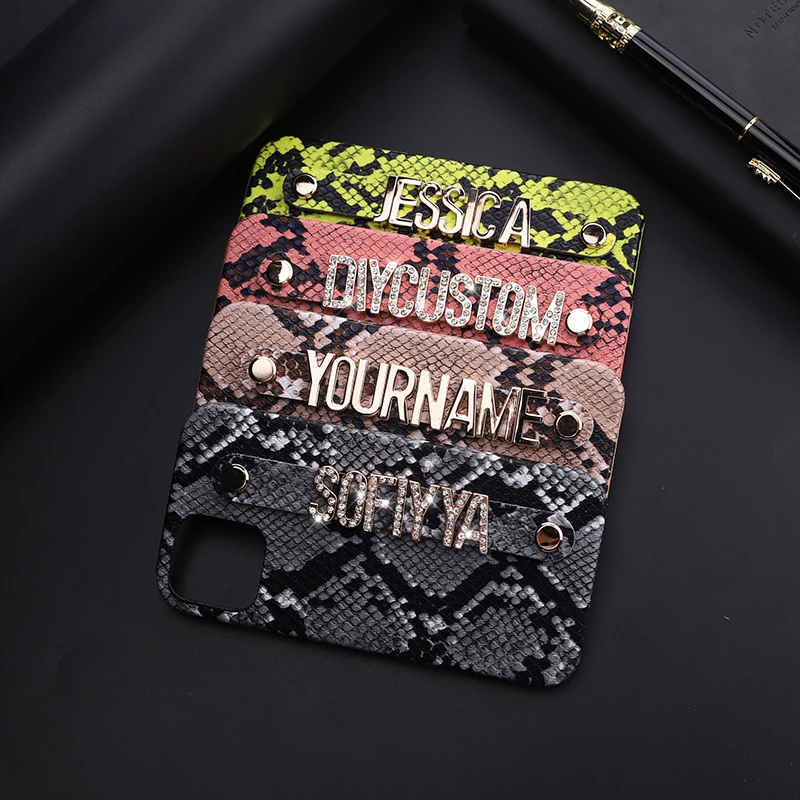 Чехол из змеиной кожи на заказ с именем для телефона iphone 12 11 13Pro Max 7 8 Plus X XS XR, металлический чехол со стразами и надписью
