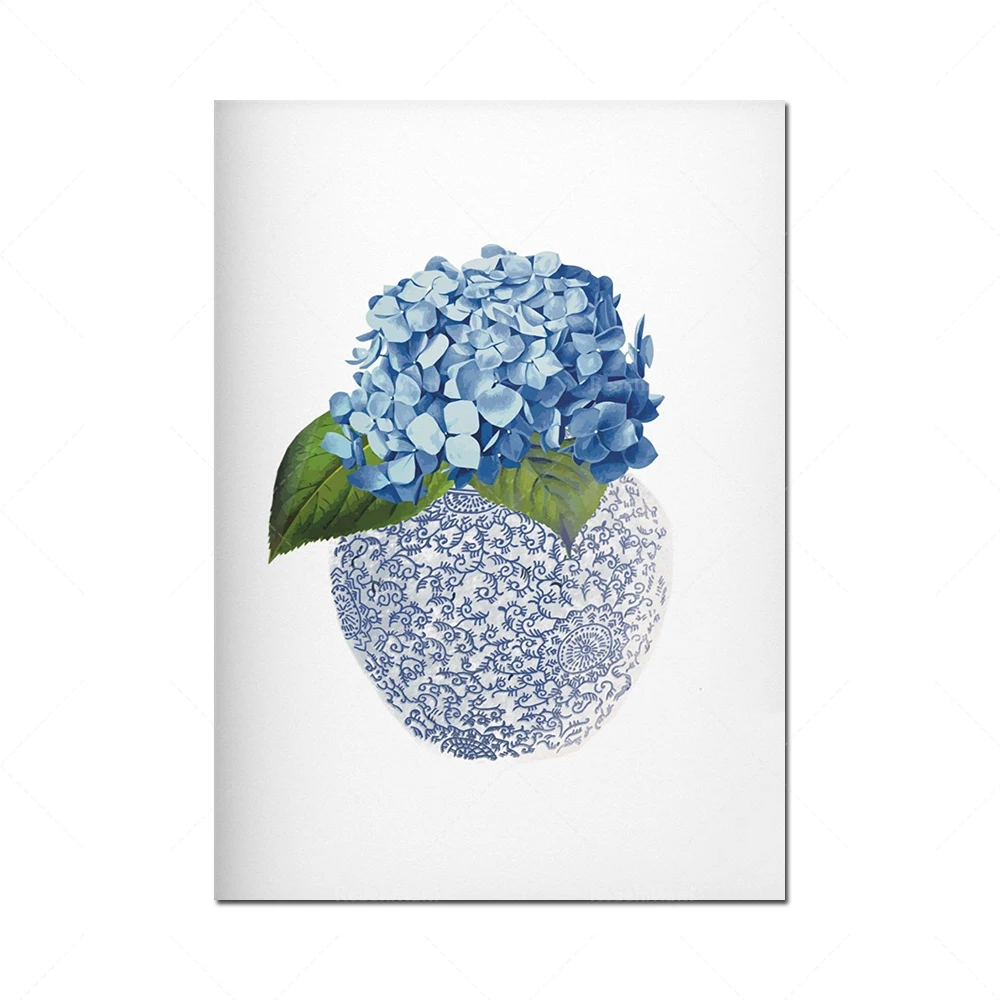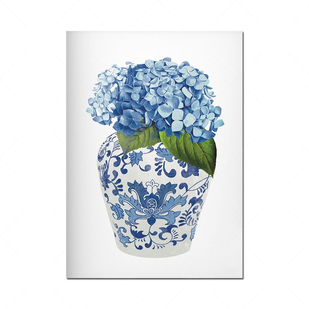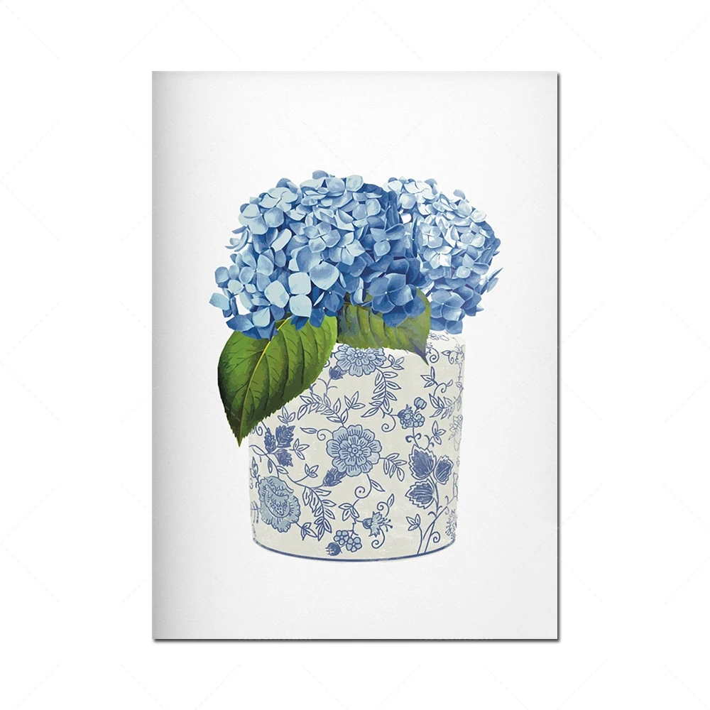 Голубая Гортензия, ботанические принты, винтажный цветочный, набор для декора берега, преппи цветочное искусство стены, фермерский стиль, шикарный китайский стиль, V