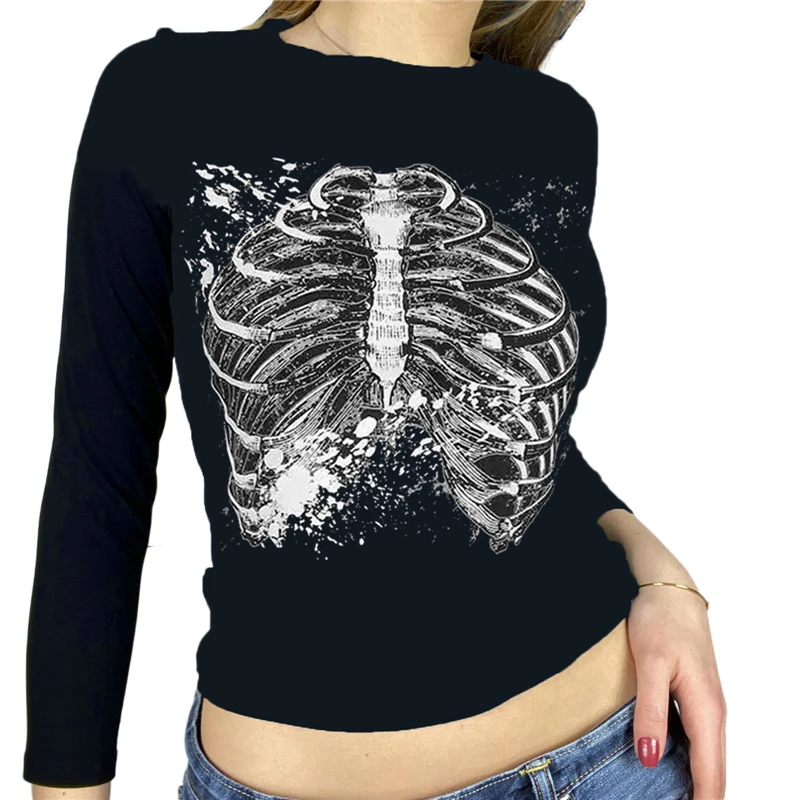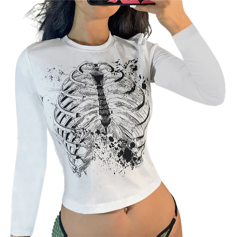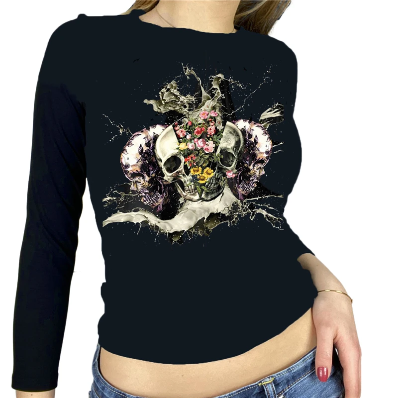 Женская футболка с графическим принтом, осенняя футболка с круглым вырезом и длинным рукавом, 2021