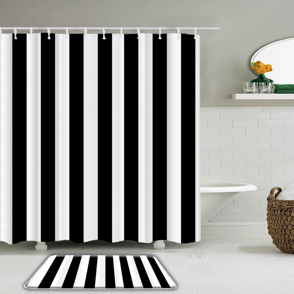 Черно-белая полосатая занавеска для душа с крючками, водонепроницае...