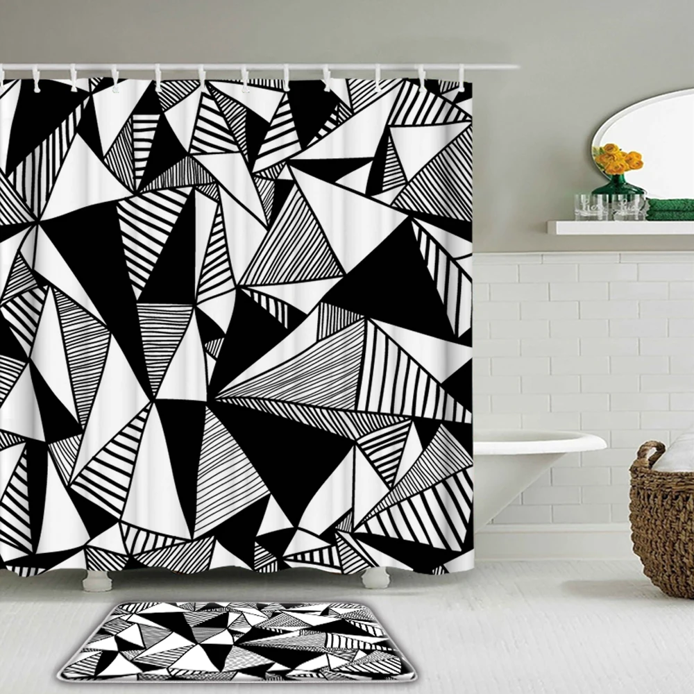Геометрическая занавеска для душа черного и белого цвета, водонепро...