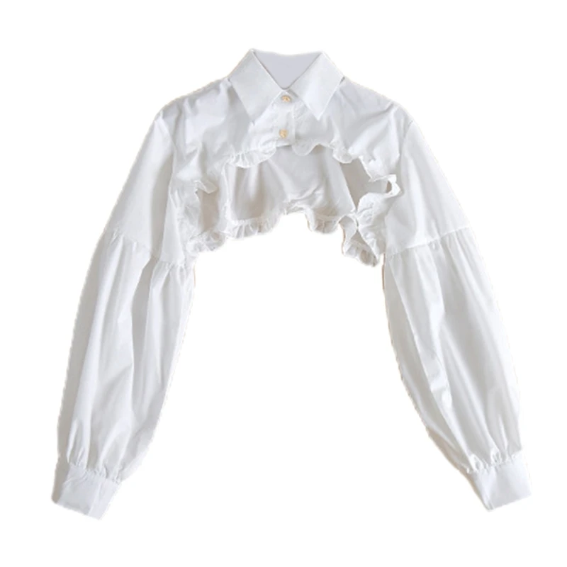 Женская блузка с длинным рукавом и оборками, Золотая кнопка съемная, имитация воротника, декоративные аксессуарыОписание:Особенности:100% новый и высокое качествоПышные длинные рукава, отложной воротник, золотистая пуговица, милый дизайн с оборками по краям, однотонный черный/белый цвет на выбор.Изготовлен из высококачественного хлопкового материала, приятный для кожи, легкий, мягкий и удобный, легко надевается и снимается.Стиль: любой Повседневный, Спортивный или элегантный, сказочный, романтичный и милый темперамент.Сравните с имитацией воротника haf сверху с блузками без воротника, трикотажной рубашкой, платьем, курткой.1 Поддельный Воротник только, другие аксессуары на фото не включены!Спецификация:Материал: хлопокРазмер: один размерПлечо: 43 см (16,92 дюйма)Длина спереди: 17 см (6,69 дюйма)Длина спины: 27 см (10,62 дюйма)Рукав: 56 см (22,04 дюйма)Воротник: 38 см (14,96 дюйма)Дополнительный цвет: черный, белыйКоличество: 1 шт.Примечание:Перевод ед. измерения: 1 см = 10 мм = 0,39 дюймовНет розничной упаковки.Допускается ошибка в 1–3 мм из-за измерений вручную Пожалуйста, убедитесь, что вы не возражаете, прежде чем сделать ставку.Из-за разницы между различными мониторами изображение может не отражать фактический цвет изделия. Спасибо!Посылка включает в себя:1 x Поддельный Воротник (другие демонстрационные аксессуары на рисунке не включены.)