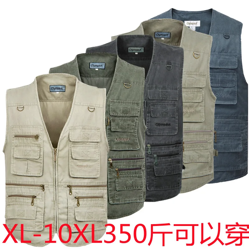 Жилет мужской из полиэстера и хлопка, рыболовный жилет с несколькими карманами, промытый, большие размеры 10XL, весна-осень