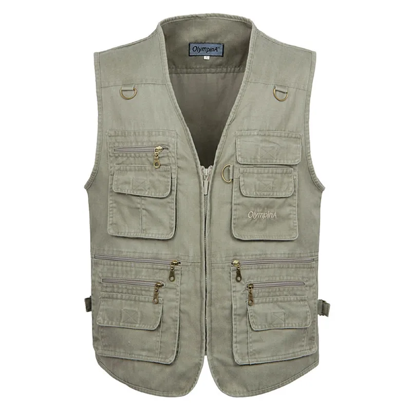 Жилетка мужская хлопковая, жилет без рукавов со множеством карманов...