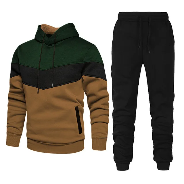 Мужской костюм в стиле пэчворк 2021, повседневная одежда с капюшоно...