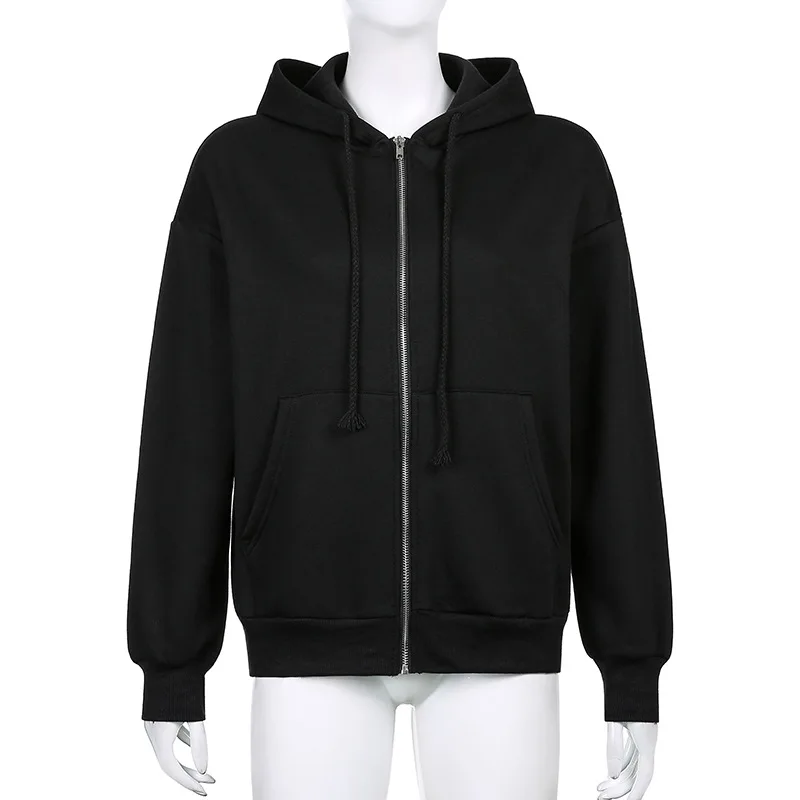 Осенне-зимняя женская толстовка на молнии, однотонные свитшоты в стиле панк, пуловер в стиле хип-хоп, модные топы, толстовки