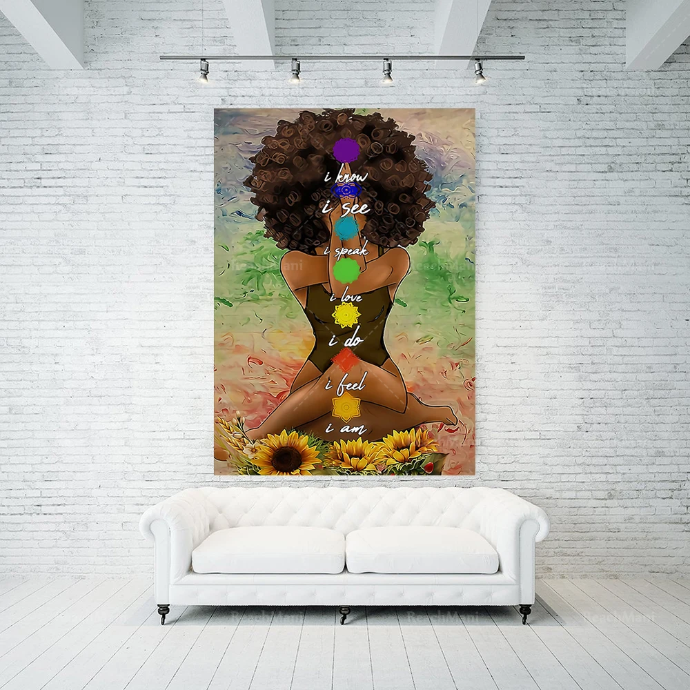 Плакат для йоги, настенное искусство для йоги, волшебные художественные принты черной девушки, плакат с чакрами для йоги, декор для йоги в студии, черная гордость
