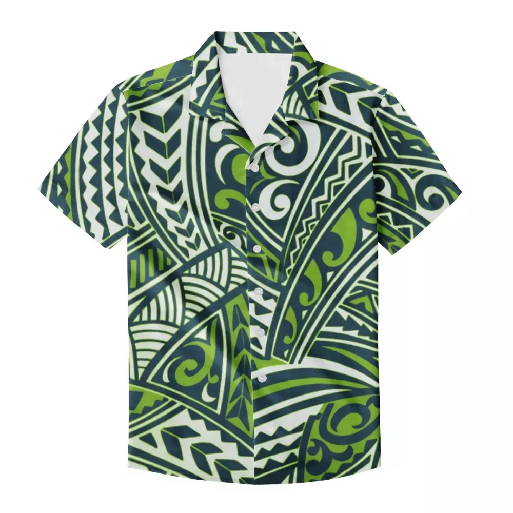 Зеленые полинезийские племенные мужские пляжные рубашки Doginthehol...