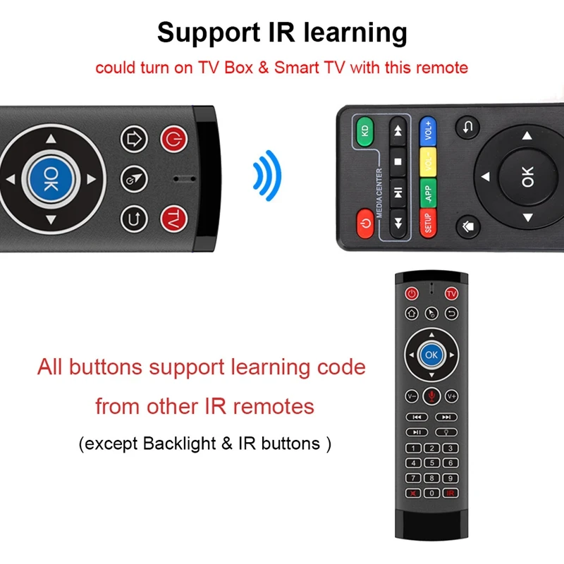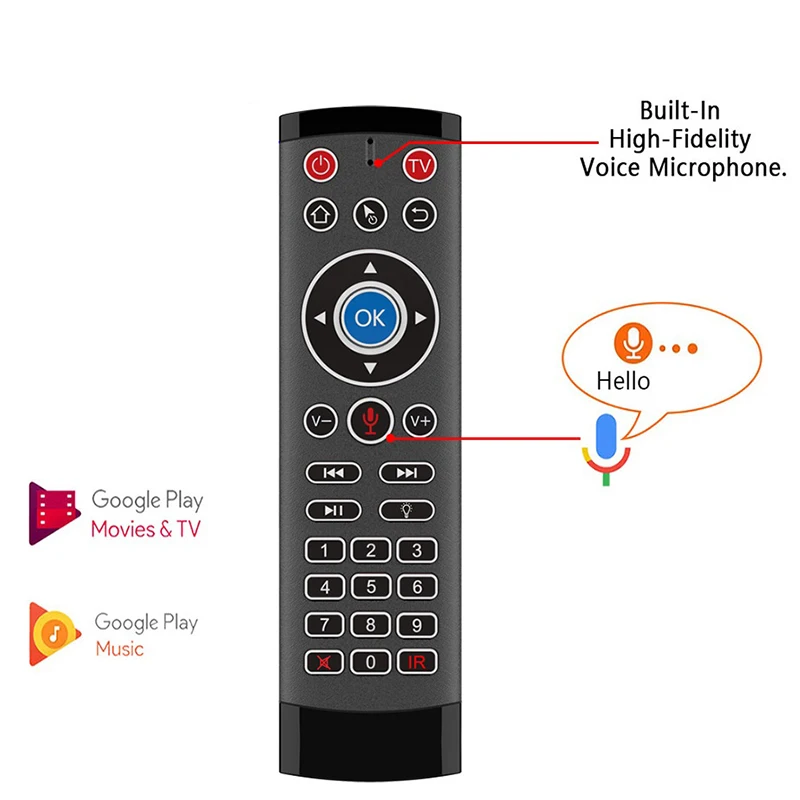 Передача и управление: 2,4G беспроводнойКлючевые номера: 29 клавишПоддержка 27 клавиш ИК-обученияРасстояние дистанционного управления: около 10 мТип батареи: AAAx2 (не входит в комплект)Потребляемая мощность: около 10 мА в рабочем состоянииПотребляемая мощность микрофона: около 20 мАПоддержка ОС: Android, Windows, Mac OS и Linux и т. Д.Цвет: черныйМатериал: пластикРазмер: 157x42x16 ммПосылка:1 * голосовое дистанционное управлениеТолько вышеуказанная посылка, другие товары не включены.Примечание: светильник и различные дисплеи могут привести к тому, что цвет товара на картинке немного отличается от реального. Допускается погрешность в измерениях +/- 1-3 см.