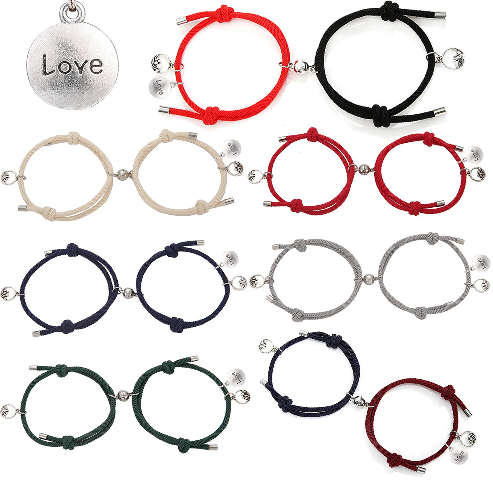 2 шт., минималистичные магнитные браслеты для пар, плетеная веревка...