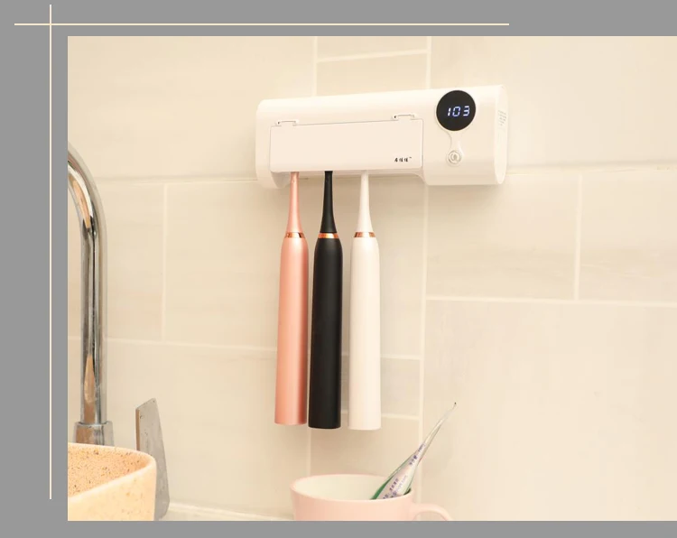 ● Технология УФ-индукции, интеллектуальная стерилизация не повреждает кожу ● Встроенный магнитный датчик, удобный дизайн, простое применение ● 4 независимых держателя для зубных щеток, подвески для зубных щеток, уменьшают загрязнение ● Одна зарядка, 45 дней работы от аккумулятора. Встроенный литиевый аккумулятор 1500 мА · ч, емкость на выносливость, срок службы батареи 45 дней ● Быстрая и эффективная, убивает бактерии всего за 6 минут
