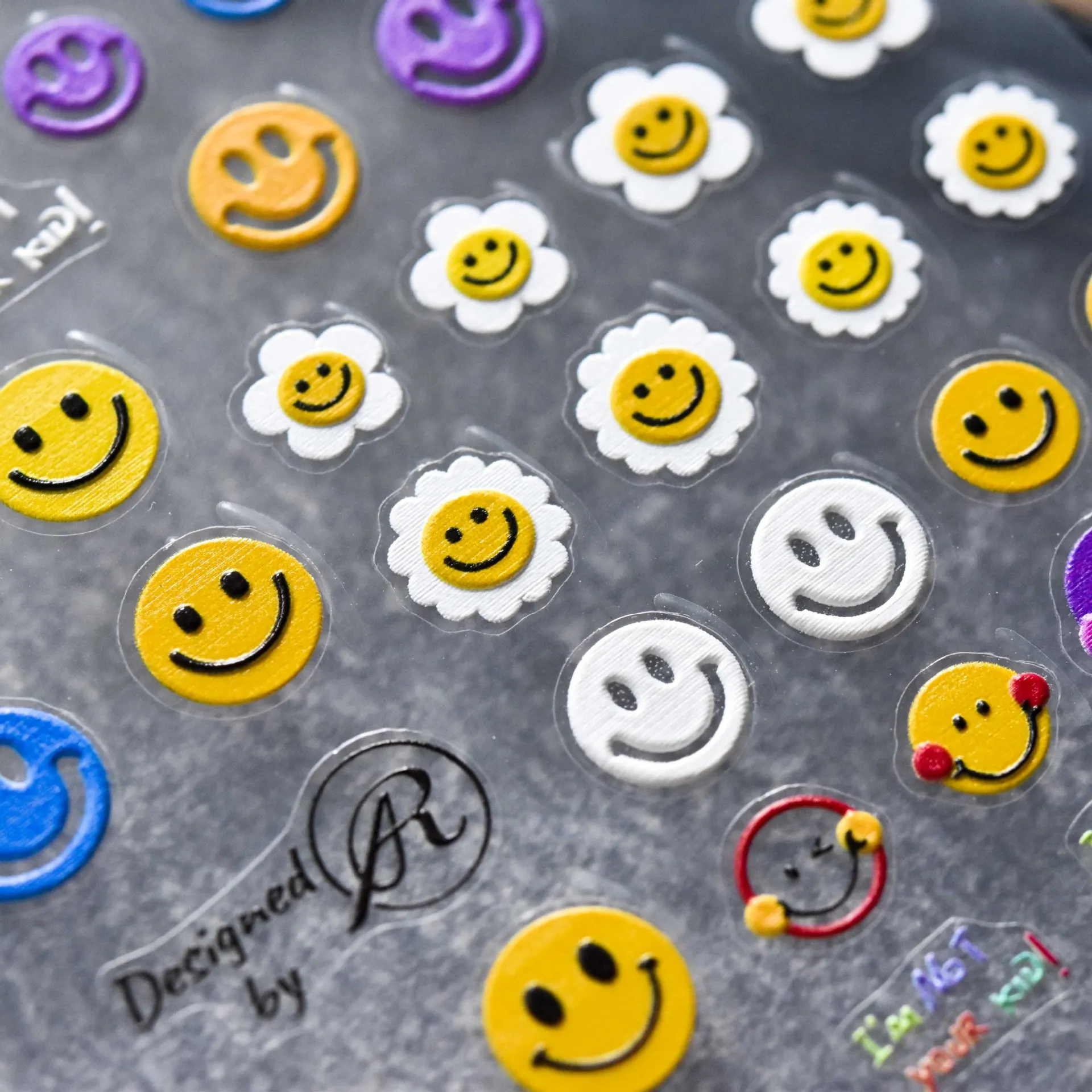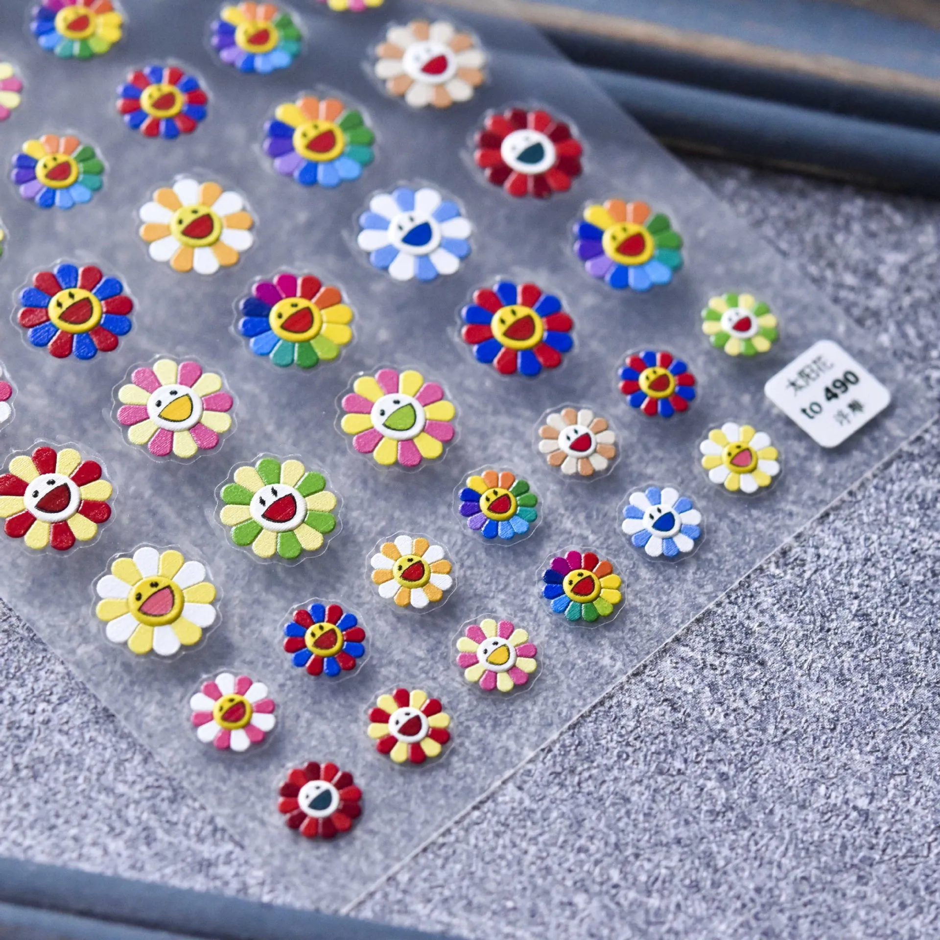 3D наклейки для дизайна ногтей, цветные цветы со смайликом, трехмер...