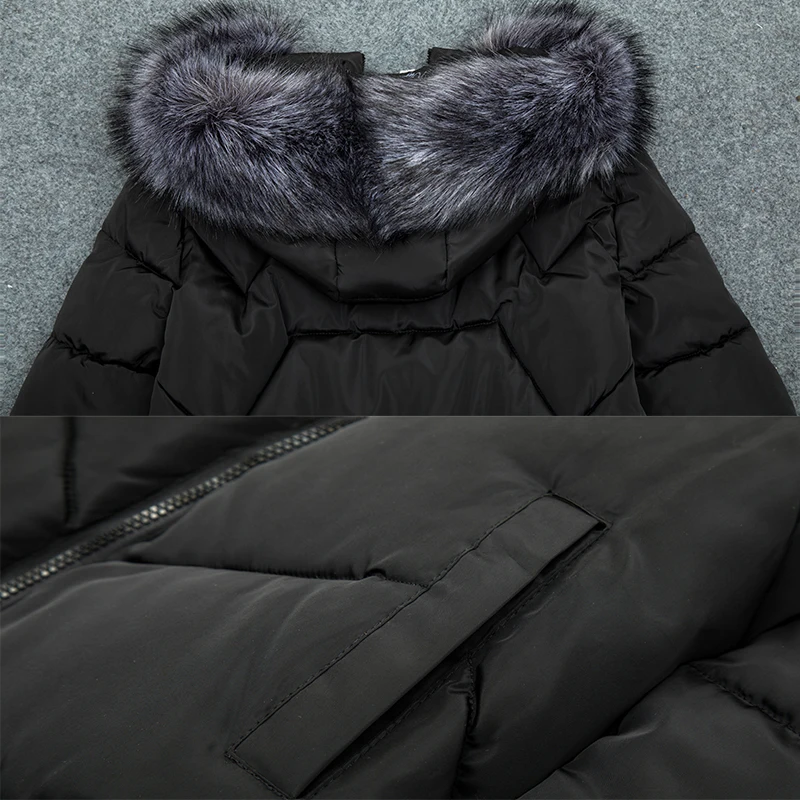 2021 Новая женская зимняя куртка с воротником из искусственного лисьего меха зимнее пальто куртка теплая Длинная Верхняя одежда с капюшоном пуховые парки