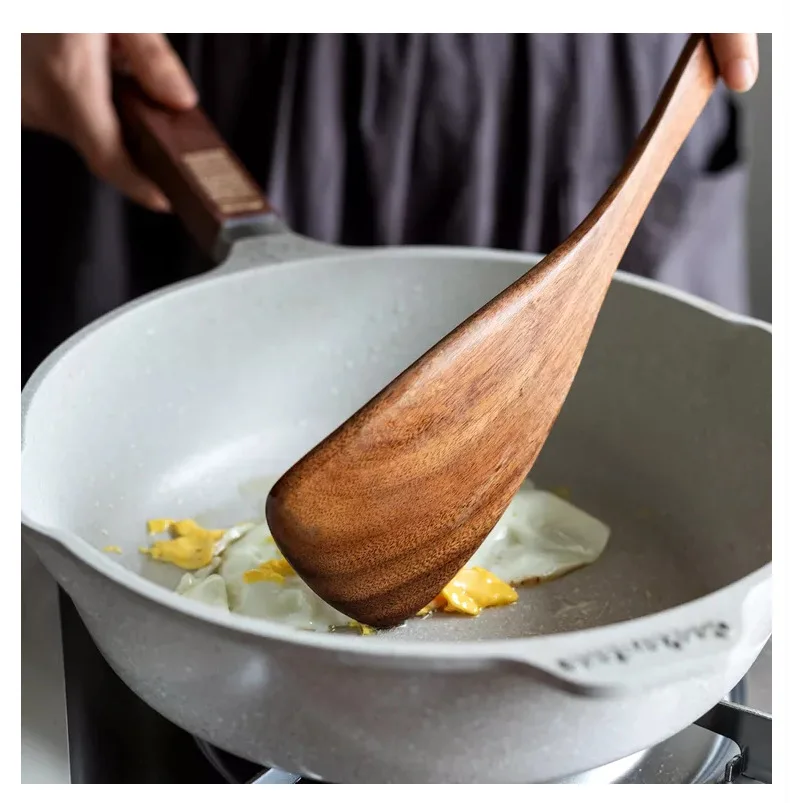 Кастрюля из тикового дерева с антипригарным покрытием, лопатка длин...
