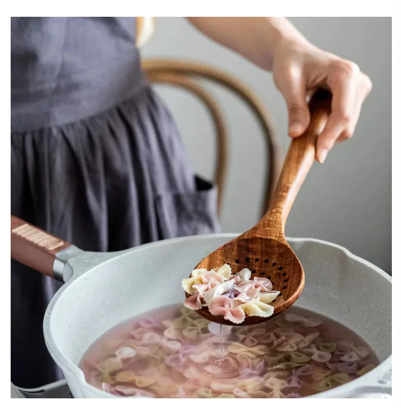 Тиковая деревянная посуда из натурального дерева ложка Тернер дуршлаг для риса шумовка для супа Пособия по кулинарии ложка в форме черепа Кухня многоразовый набор инструментов