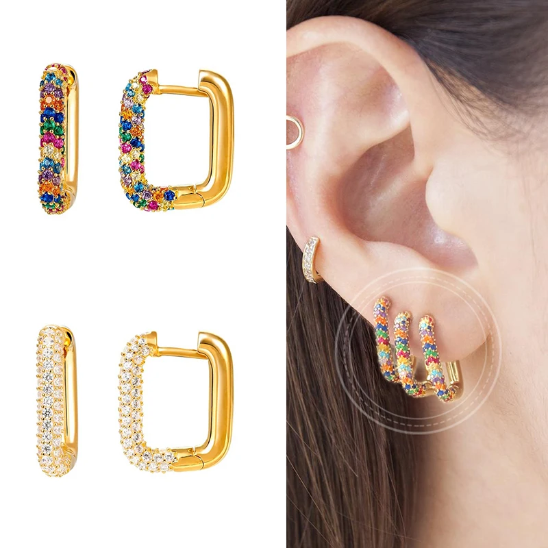 1 шт. очаровательные красочные циркониевые квадратные серьги-кольца...