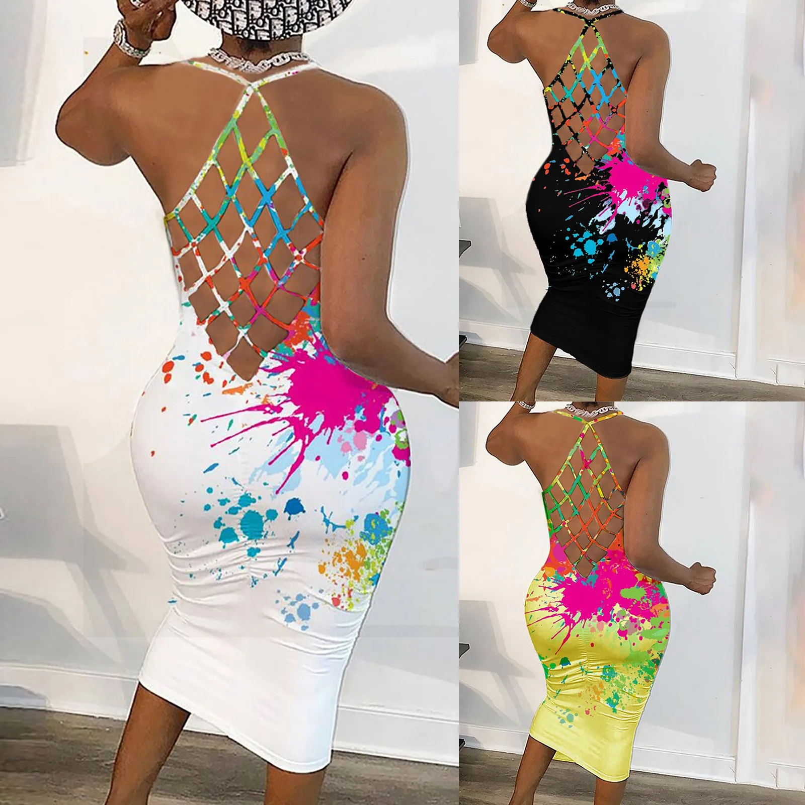 Женское платье с круглым вырезом, длинное повседневное Сетчатое платье с принтом, 2021