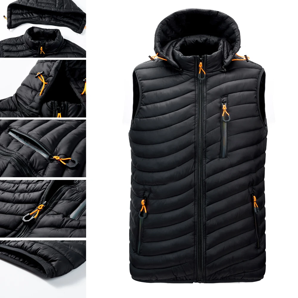 Жилет, жилеты с карманами, съемная шапка для мужчин, зимний пуховик, повседневная мужская толстовка без рукавов, военное боди, Мужское боди