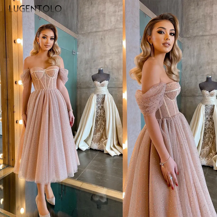 Строгие Вечерние платья из тюля, корсет с открытыми плечами, коротк...