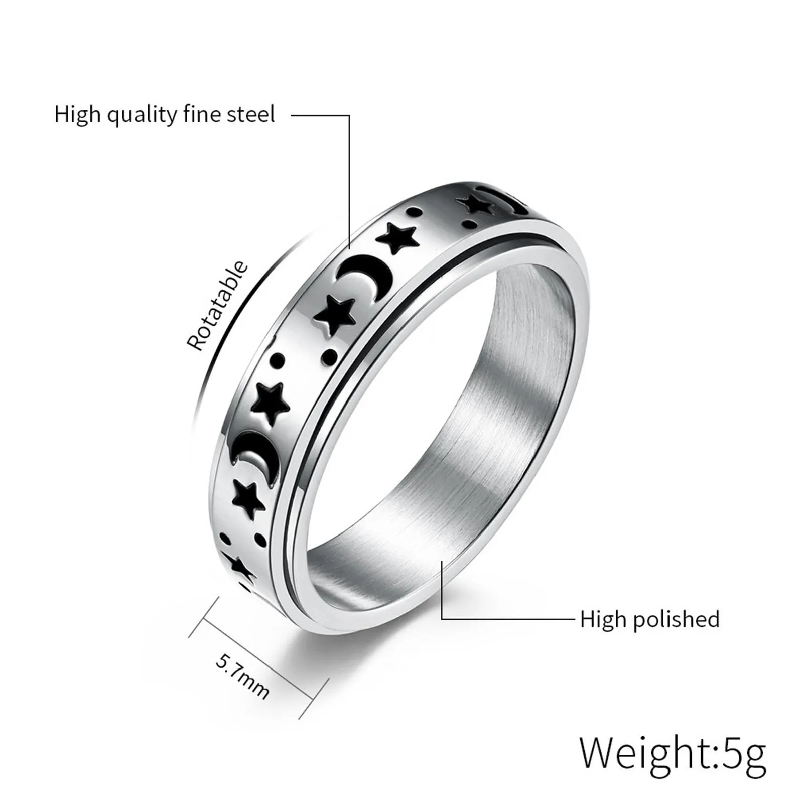 Кольцо женское из нержавеющей стали со звездами и луной, 2021