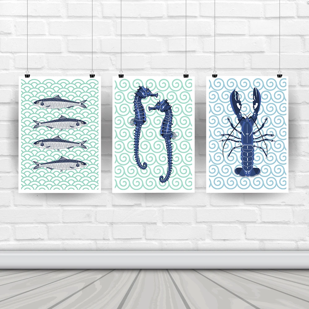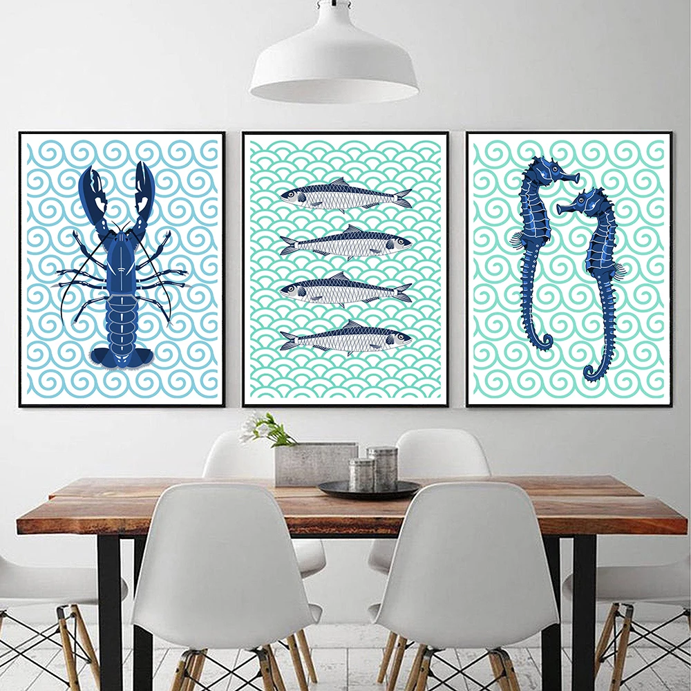 HD-изображения: береговой лобстер, рыба, морская лошадь, сардины, морская рыба, настенные художественные принты, животные, холст, картина для ванной, кухни, домашний декор