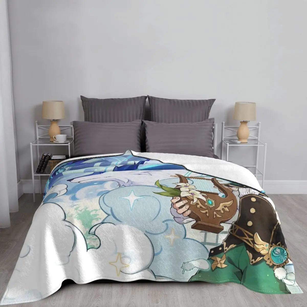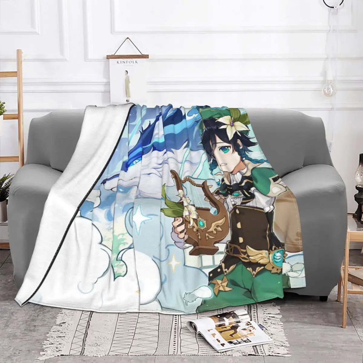 Одеяло Genshin Impact Venti Dvalin, фланелевое одеяло с принтом аниме, портативное теплое покрывало для кровати, коврик для путешествий