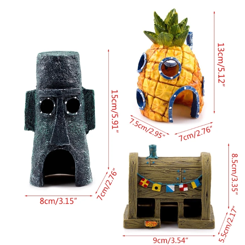 T21D аквариум с мультяшным аквариумом, декор Дом в форме ананаса, краб, ресторанные украшения, идеальный скрытый дом для маленьких рыб среднего размераOOTDTYОсобенности: 1. Идеальный Размеры: орнамент меры 3,4-5,9 см в высоту, поэтому она легко поместится в практически любой домашней Рыбный бак. Он разработан, чтобы быть идеальным элементом для любого аквариума независимо от размера. Творите! Вы можете использовать этот продукт в качестве центрального элемента, топпера для торта или пресс-папье для поклонников шоу.2. Легко чистить: просто протрите и снимите краску с орнамента теплой водой, когда вы чистите резервуар. Никогда не используйте мыло, так как остаточные частицы мыла могут повредить вашу рыбу.3. Принесите подводный мир губки-Боб-стиль дома: идеально подходит как для взрослых, так и для детей! Это забавное украшение для аквариума мгновенно добавит жизненной силы вашему танку! Обеспечьте большинству маленьких и средних рыб комфортное укрытие, позволяя им плавать в нем и вокруг него.4. Безопасный Материал: изготовлен из экологически чистого полимерного материала, нетоксичный и прочный. Никакого вреда для вашей рыбы и качества воды. Безопасно для детей.5. Применяется ко всем условиям: подходит как для пресной воды, так и для аквариум с соленой водой, и для аквариума. Может использоваться для украшения сада, двора, отеля и ландшафта.Спецификация: Материал: смолаЦвет: как показано на фотографииУзор: дом в форме ананаса/краб ресторан/скудное укрытиеРазмер:Дом в форме ананаса-Approx.7x7.5x13cm/2.76x2.95x5.12inКраб ресторан-Approx.9x5.5x8.5cm/3.54x2.17x3.35inSquidward Hideout - Approx.8x7x15cm/3.15x2.76x5.91inВес:Дом в форме ананаса-Approx.131gКраб ресторан-Approx.108gSquidward Hideout - Approx.158gПосылка включает в себя: 1 шт. аквариумные украшенияПримечание: 1. Допускается погрешность в 0-1 см из-за ручного измерения. Пожалуйста, убедитесь, что вы не возражаете, прежде чем сделать ставку.2. В связи с разной конфигурацией разных мониторов изображение не отображает фактический цвет товара. Спасибо!