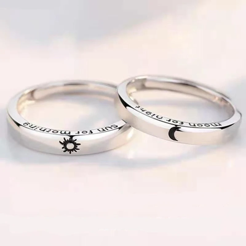 Простое Открытое кольцо с буквами солнце и луна, 2 шт., парные коль...