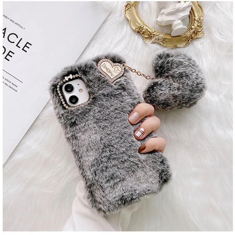 Feature 13D Cute Luxury Warm Fur Plush diamond Phone Case
