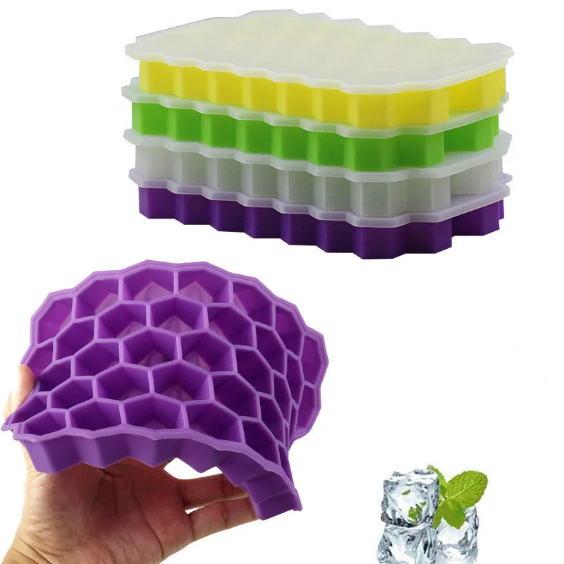 37-сотовый лоток поднос кубика льда с крышкой, пищевого силикона без бисфенола А Гибкая форма для льда