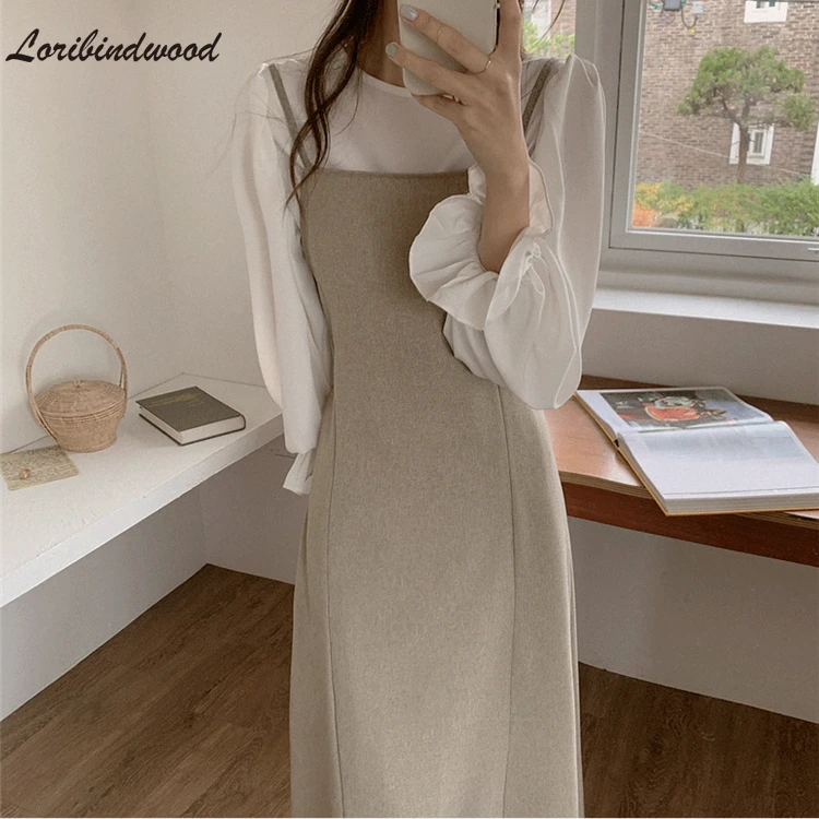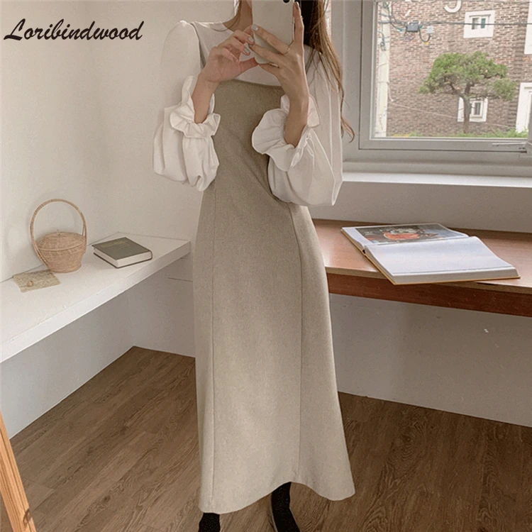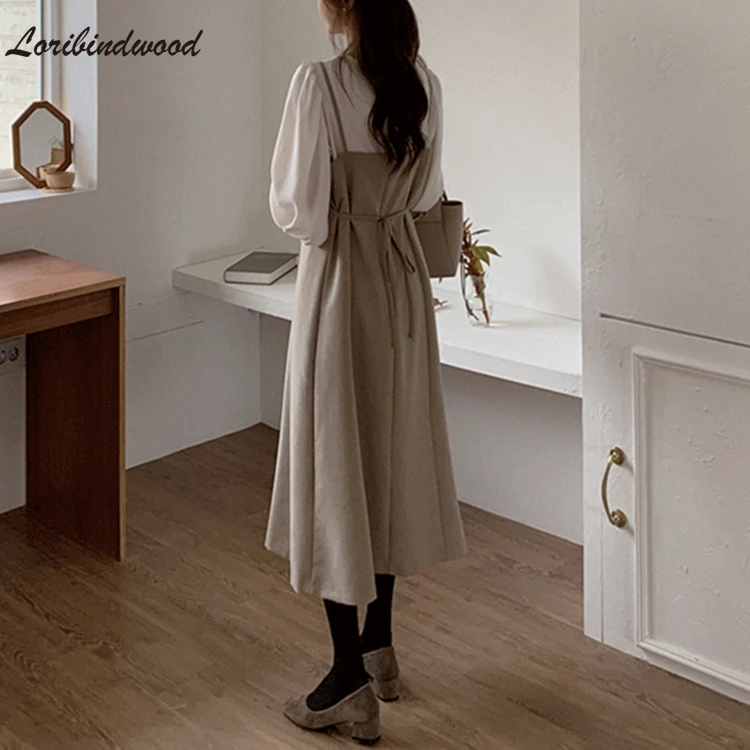 Женский комплект из 2 предметов, элегантный винтажный комплект из блузки и платья без рукавов на шнуровке, Осень-зима 2021