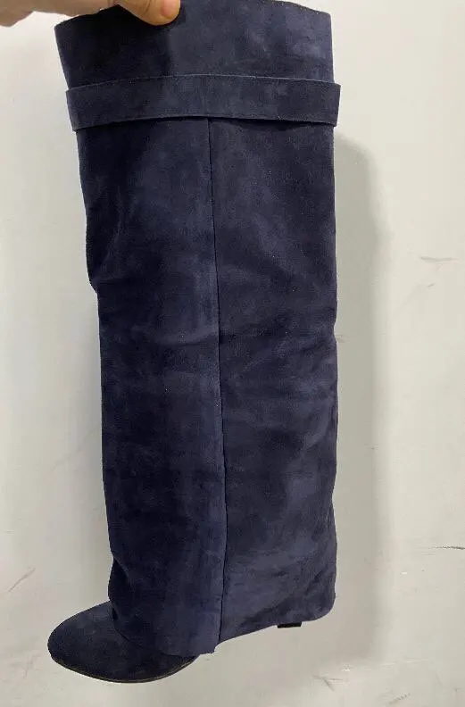 Женские замшевые сапоги на танкетке, с острым носком, размер 42