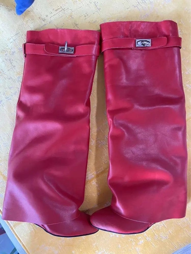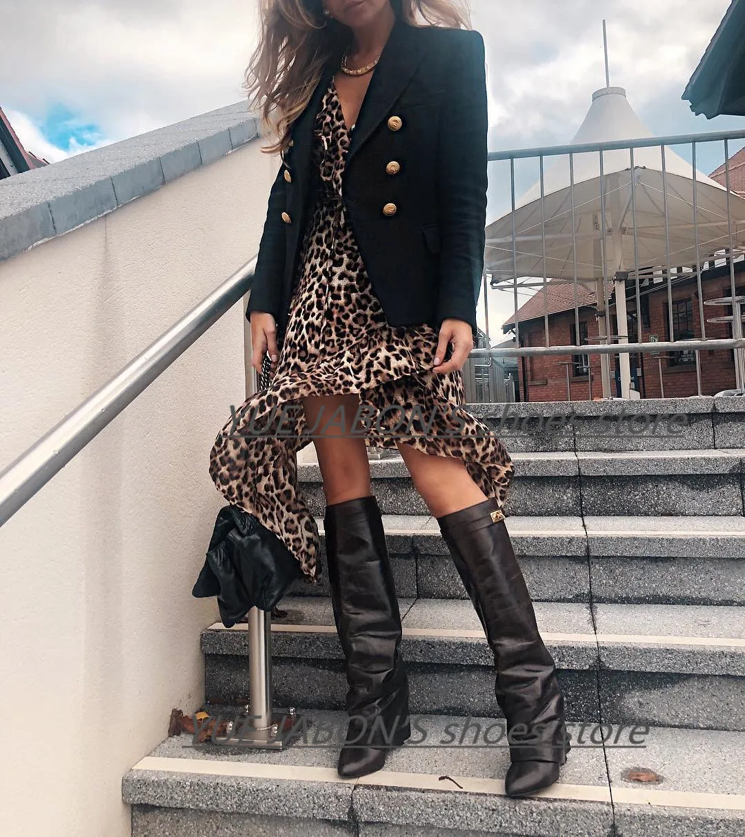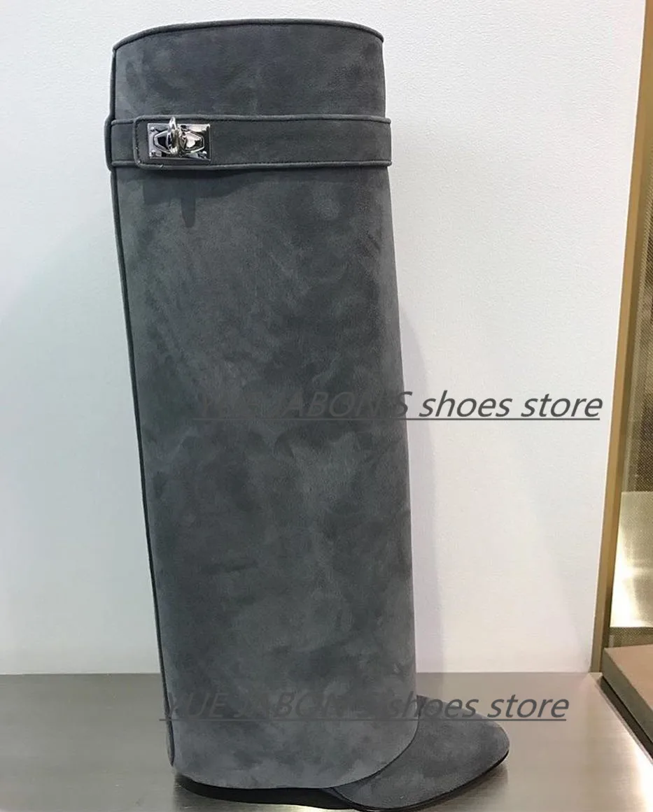 Новые зимние высокие сапоги до колена с металлическим замком акулы,...