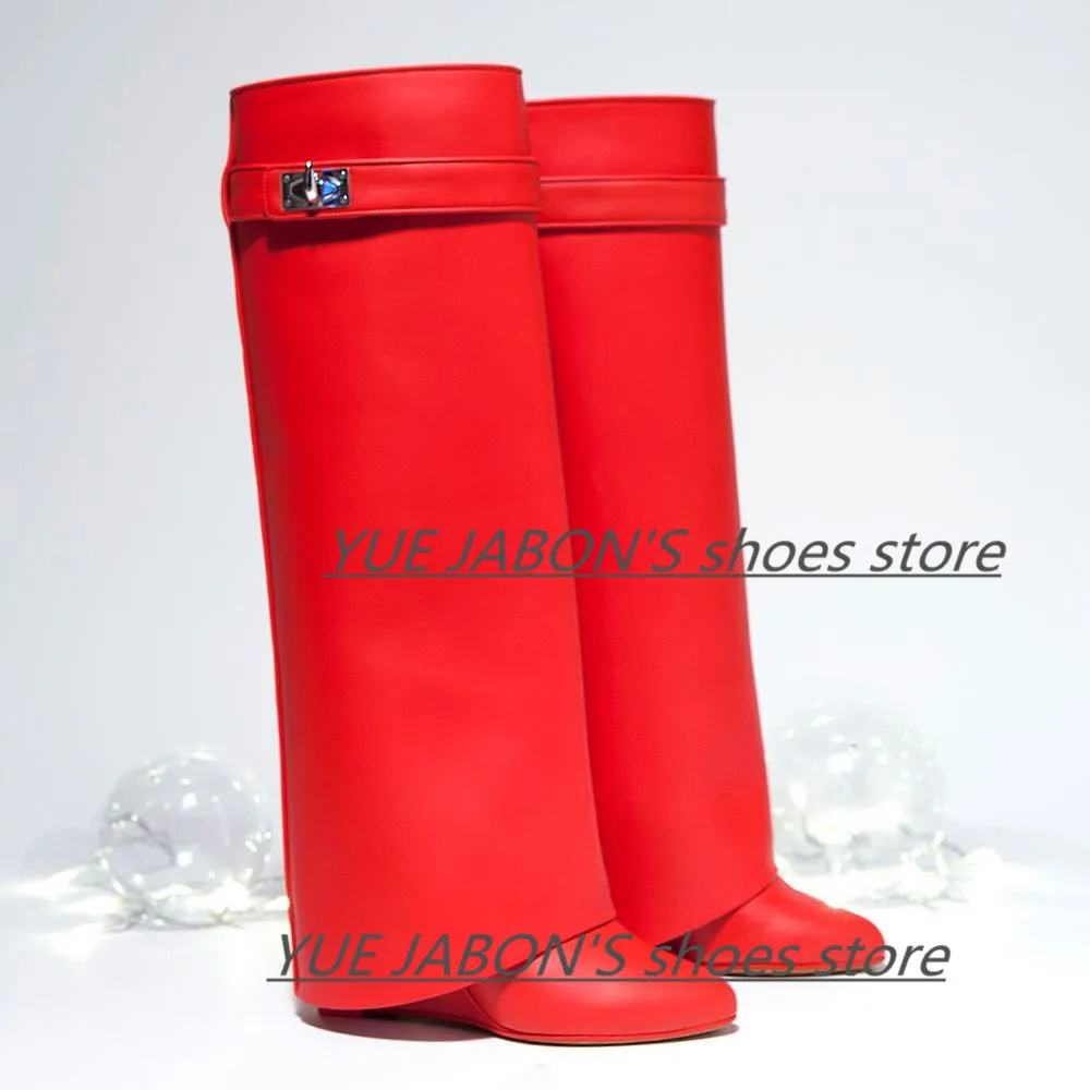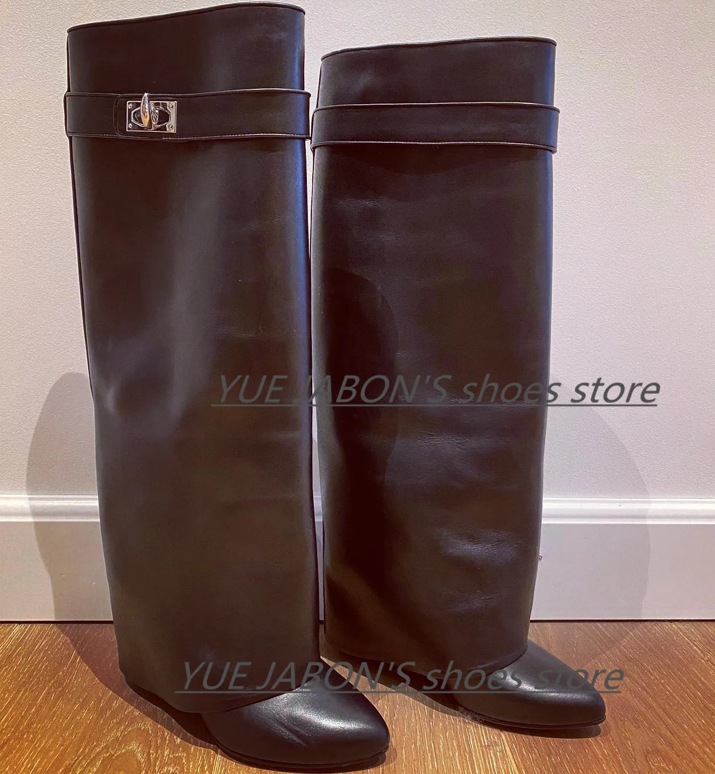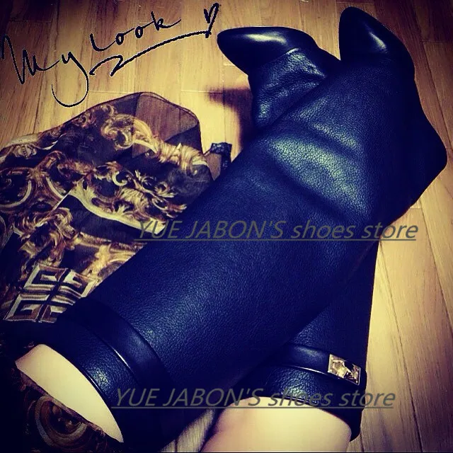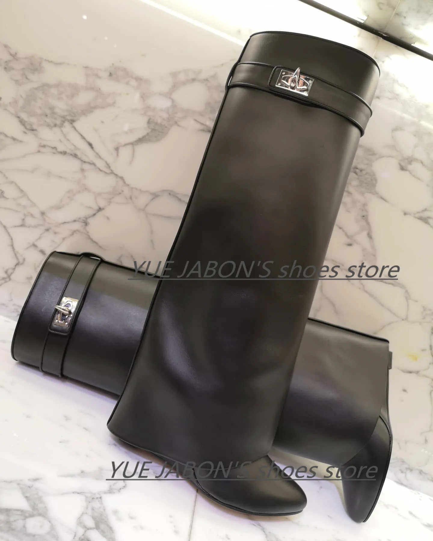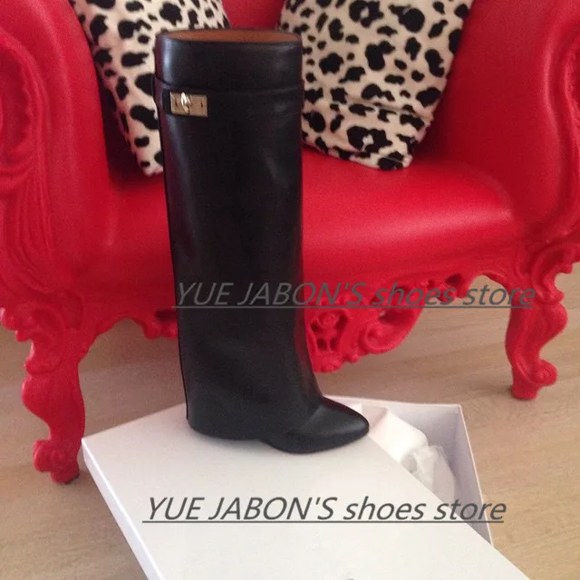 Женские сапоги на танкетке с металлическим замком Акула, ботфорты с...