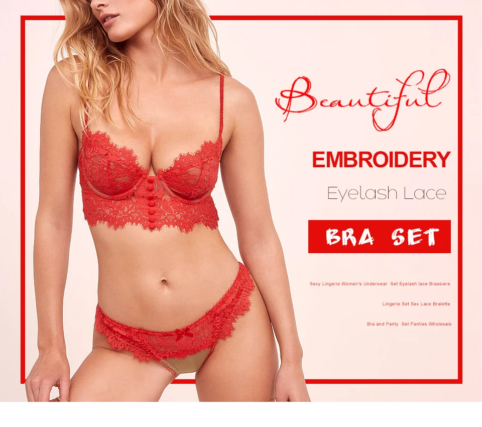Новинка 2021, кружевной комплект нижнего белья с бюстгальтером, сексуальное женское белье, комплект нижнего белья, кружевной бюстгальтер без косточек с ресницами + трусики, красный, розовый