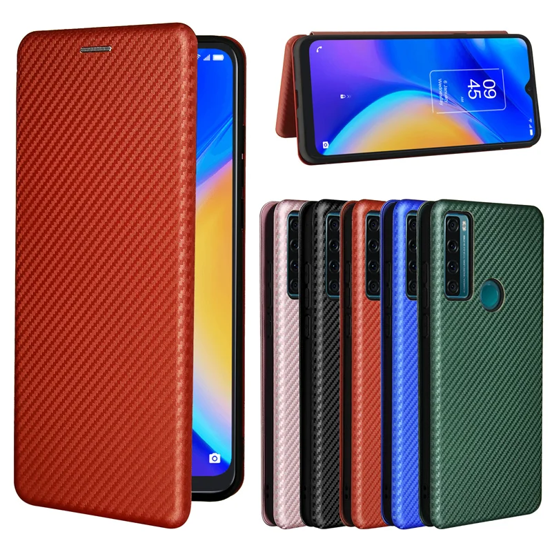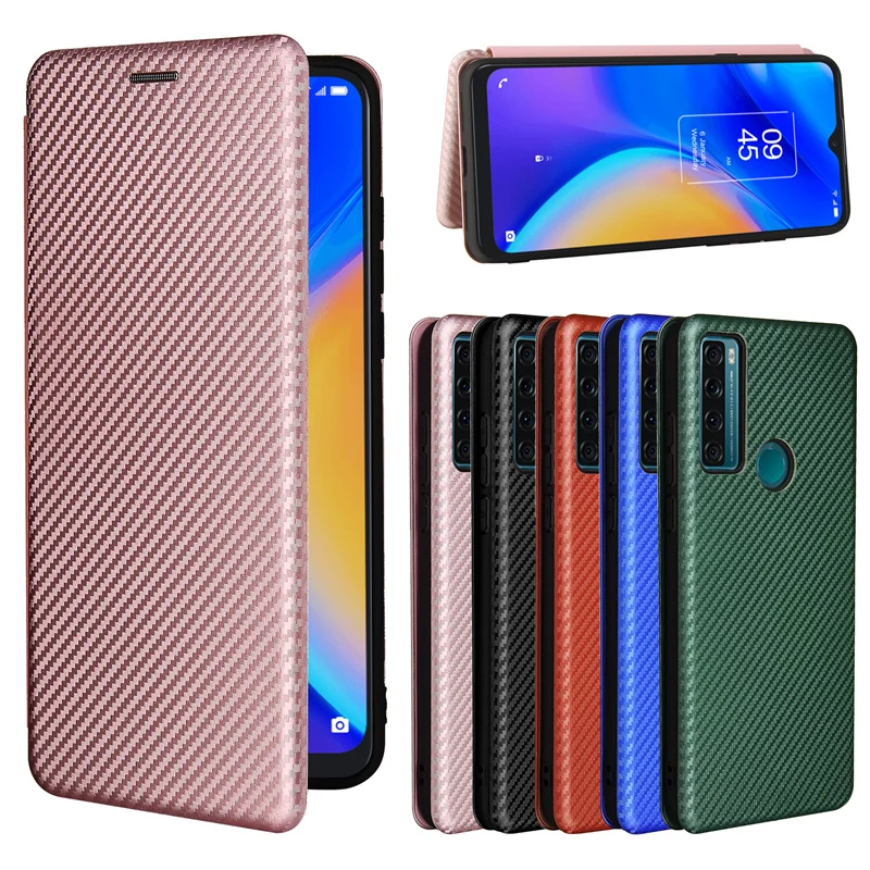 Чехол для TCL 20 SE, 6,82 дюйма, модный жесткий чехол из углеродного волокна и поликарбоната с отделением для карт, тонкий кожаный чехол для TCL 20SE, чехол-книжка с бумажником