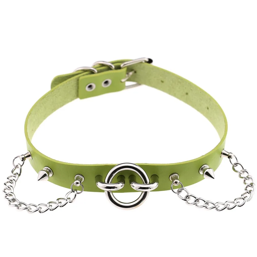 Ожерелье-чокер с шипами эмо, зеленое готическое ожерелье в стиле панк, модный пояс из искусственной кожи, аксессуары в стиле Харадзюку, ювелирные изделия на Хэллоуин