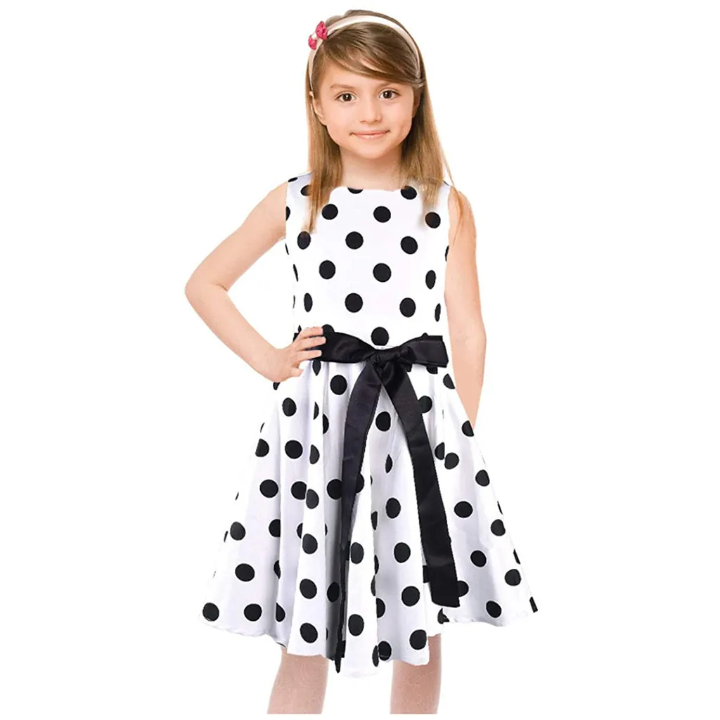 Новинка, модное винтажное платье для девочек, платье в горошек, вечерние платья принцессы в стиле рокабилли, детские летние повседневные платья с воротником