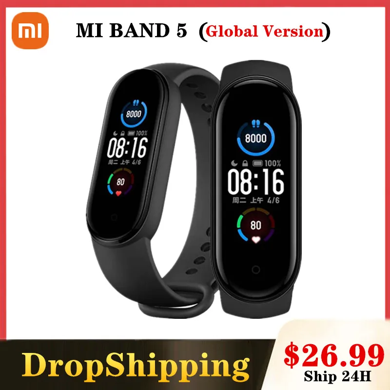Смарт-браслет Xiaomi Mi Band 5, водонепроницаемый, 1:1, большой экран AMOLED, пульсометр, Bluetooth 5,0