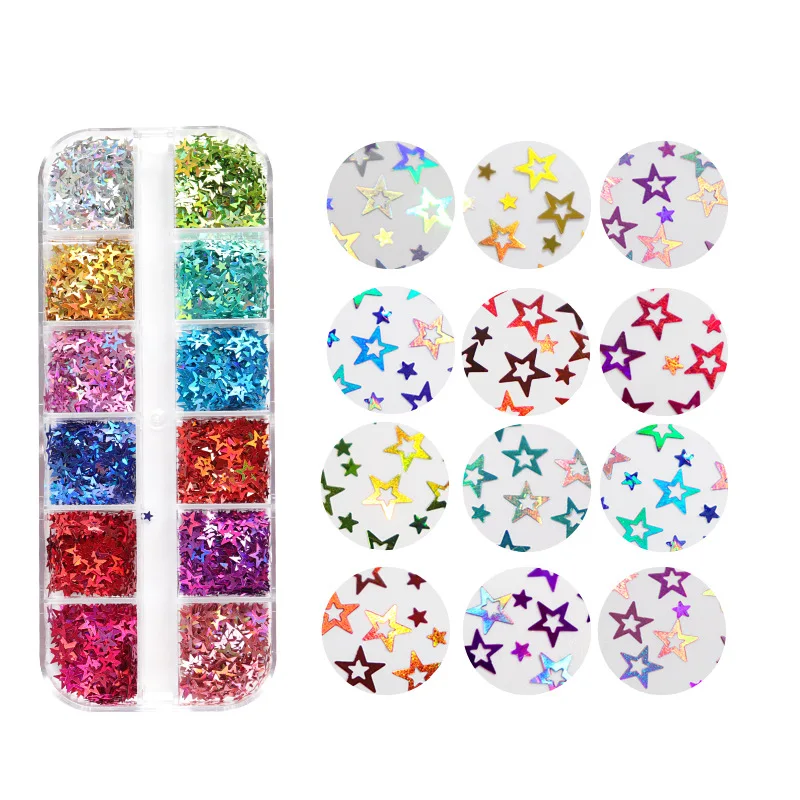12 ячеек голографические блестящие звезды дизайн ногтей блестки сме...